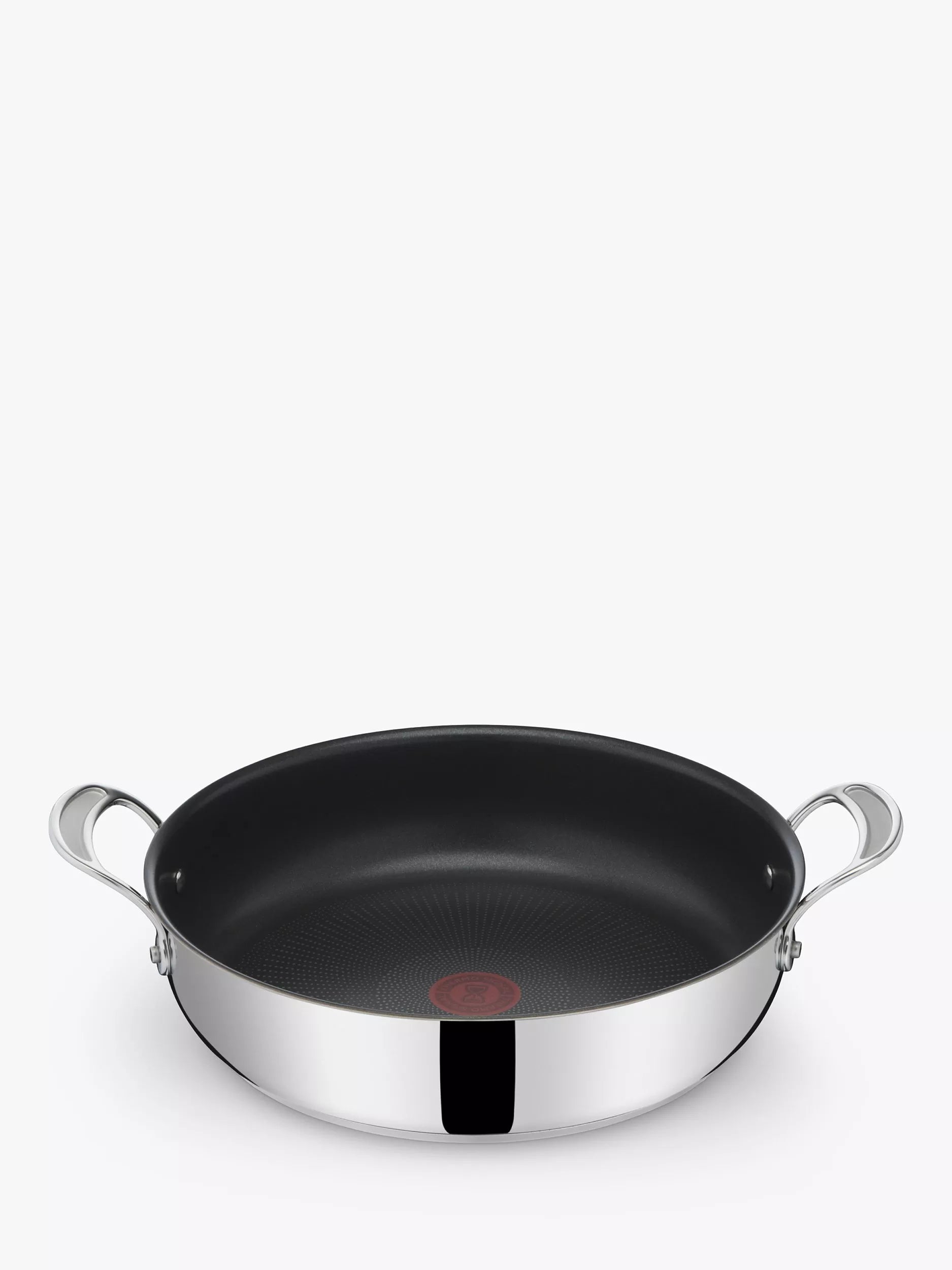 The Jamie Oliver by Tefal Cook's Classics range is expertly crafted from stainless steel for exceptional durability and a lifetime of professional-style home cooking. The stainless steel is resistant to corrosion, stains and shocks. With this design's helpful Thermo-Signal technology, the heat indicator hourglass icon disappears when the pan reaches the optimum cooking temperature.