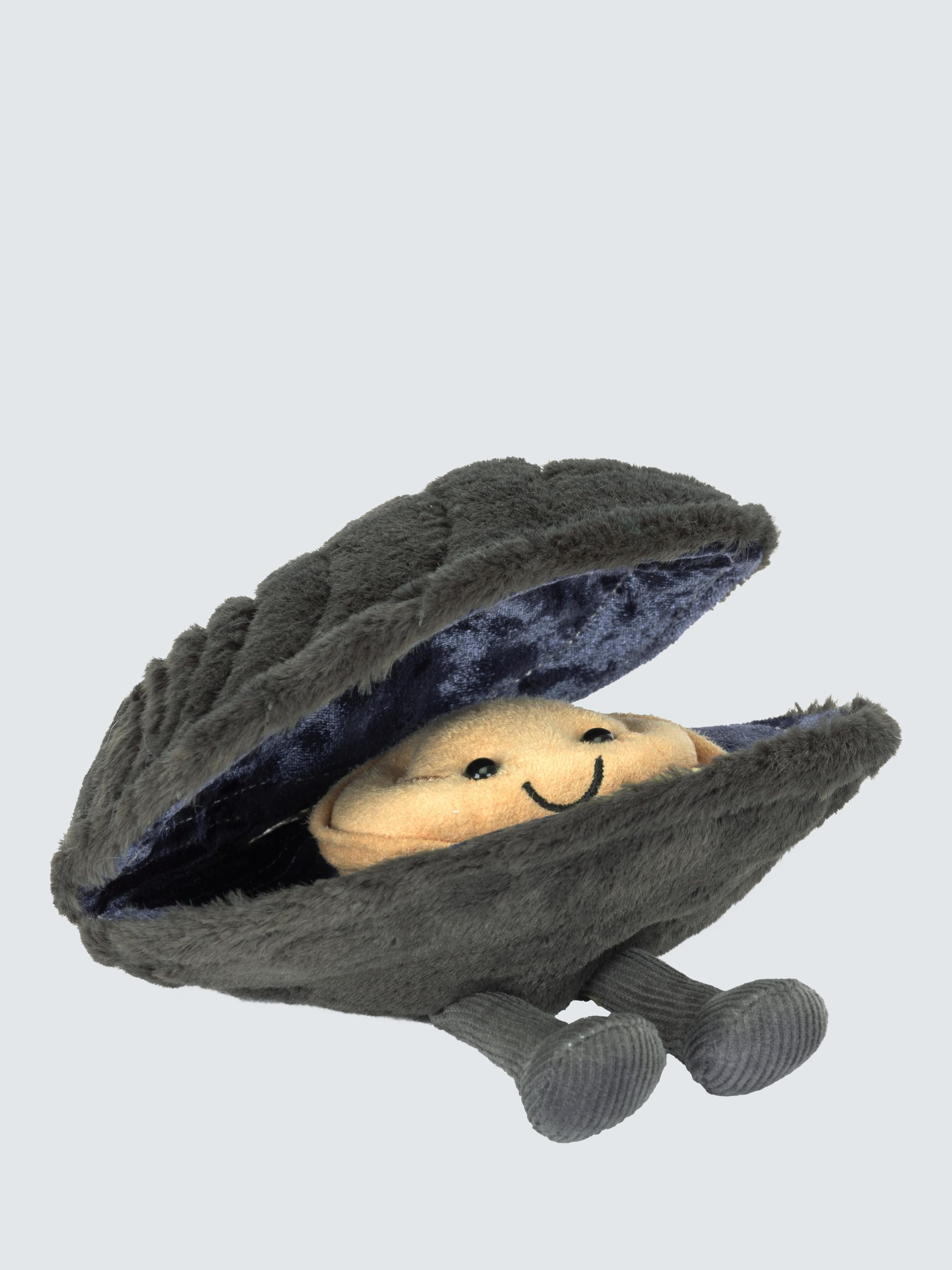 Jellycat presents the Amuseables Michelle Mussel Soft Toy, a delightful companion for truly imaginative play. This unique mollusc features a charcoal shell that opens to reveal a soft, beige suedette body inside. With charming cord legs and a stitched smile, Michelle makes a perfect, comforting seaside friend for little ones.