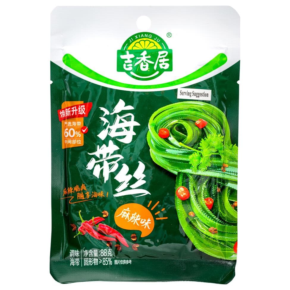 Ji Xiang Ju Spicy and Hot Shredded Kelp (L) offers a bold and flavorful snack or side dish featuring shredded kelp infused with spicy and hot seasoning. This Chinese specialty combines the natural umami of kelp with a fiery kick of spices, creating a savory and spicy taste experience. Often enjoyed as a snack or appetizer, the shredded kelp is known for its chewy texture and the satisfying heat from the spices. Ji Xiang Ju Spicy and Hot Shredded Kelp (L) is a popular choice among those who appreciate spicy foods and traditional Chinese flavors, providing a delicious option for adding zest to meals or enjoying on its own.