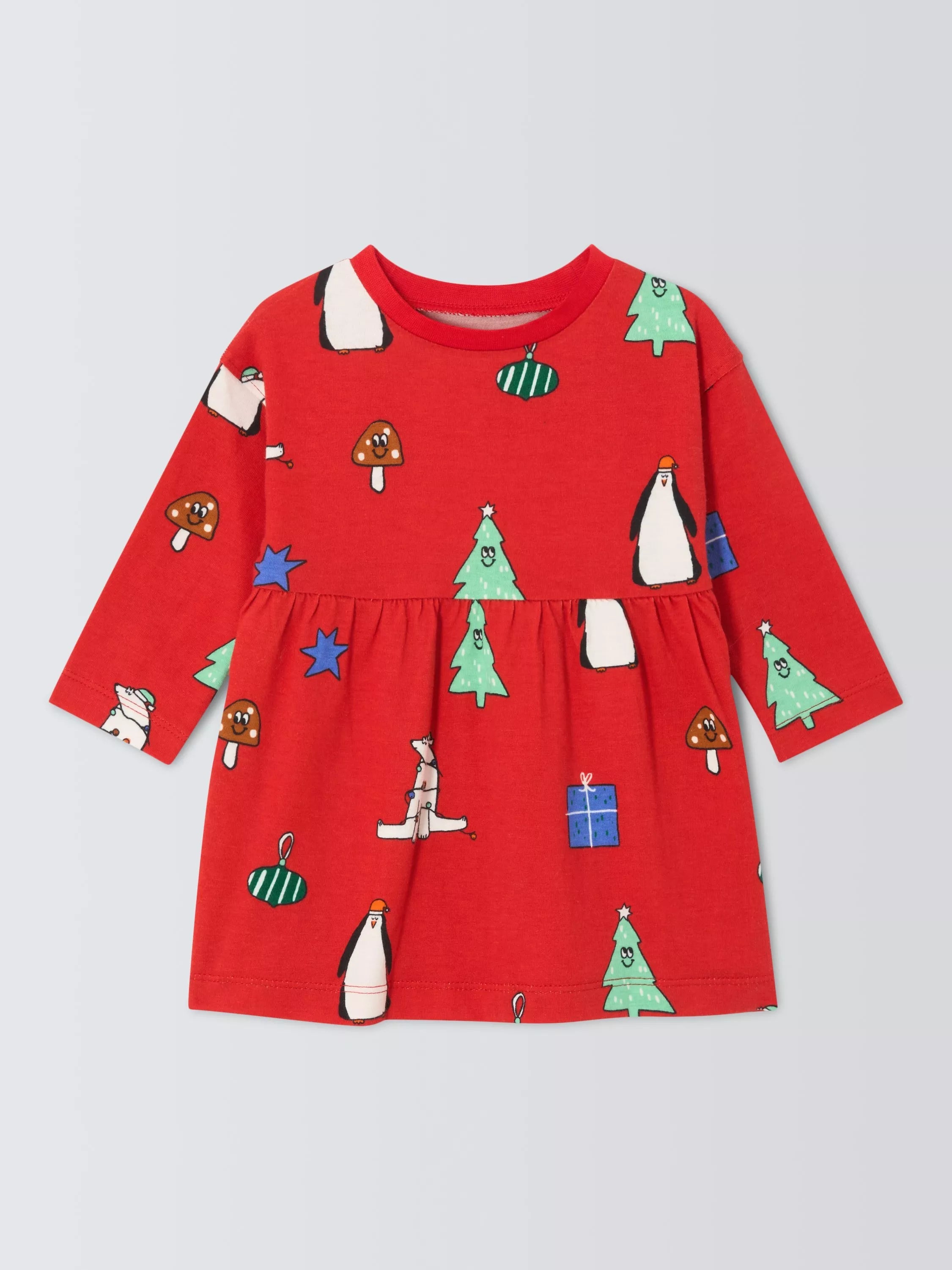 Covered in cute Christmas cartoons this dress is one to be worn at those festive gatherings throughout winter. It's made from 100% for softness against young skin.