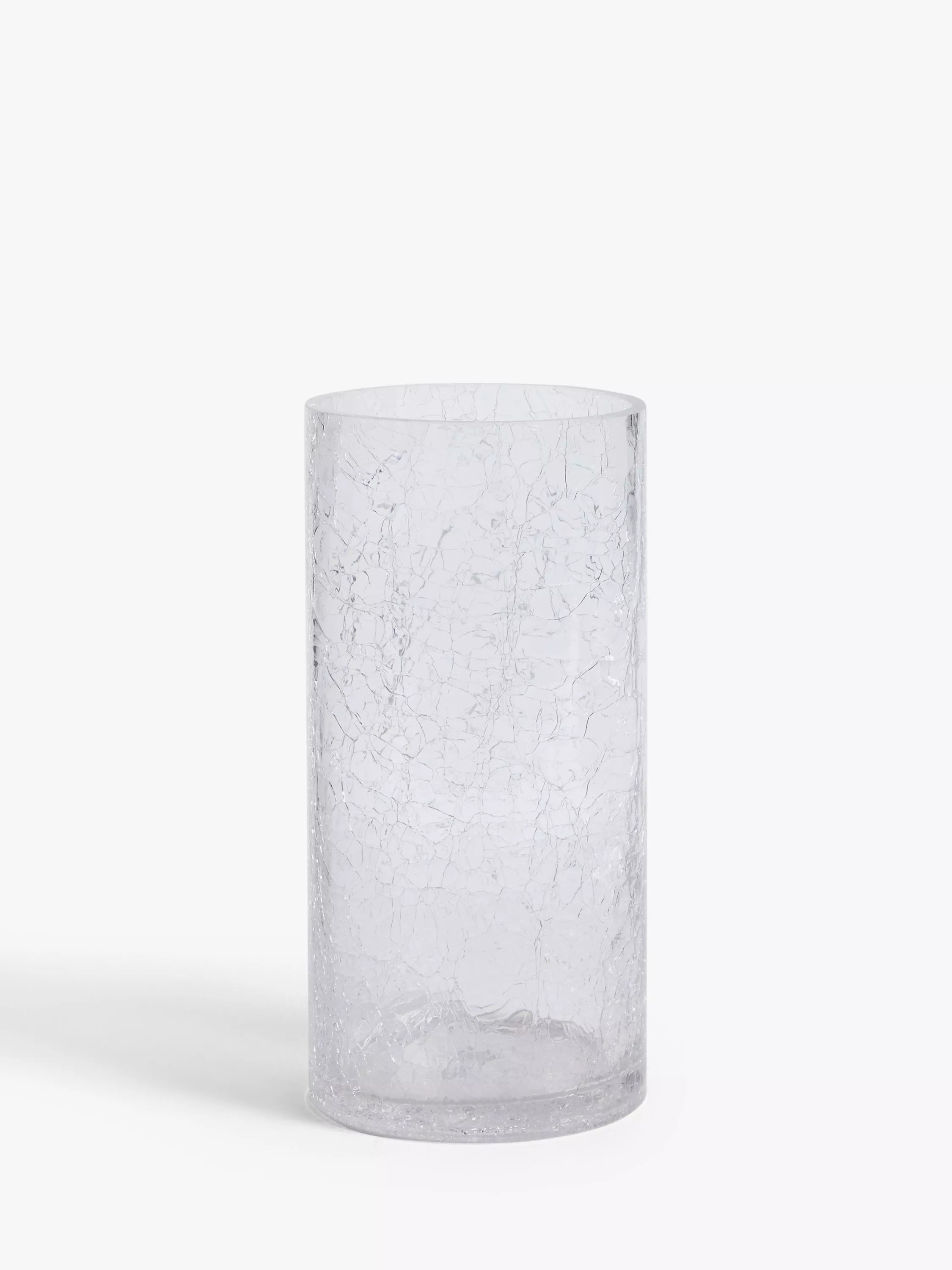 Our Crackle vase has a classic cylindrical shape, perfect for displaying tall blooms. We've hand blown the glass and finished it with haphazard crackles as if the glass has been shattered and then put back together.