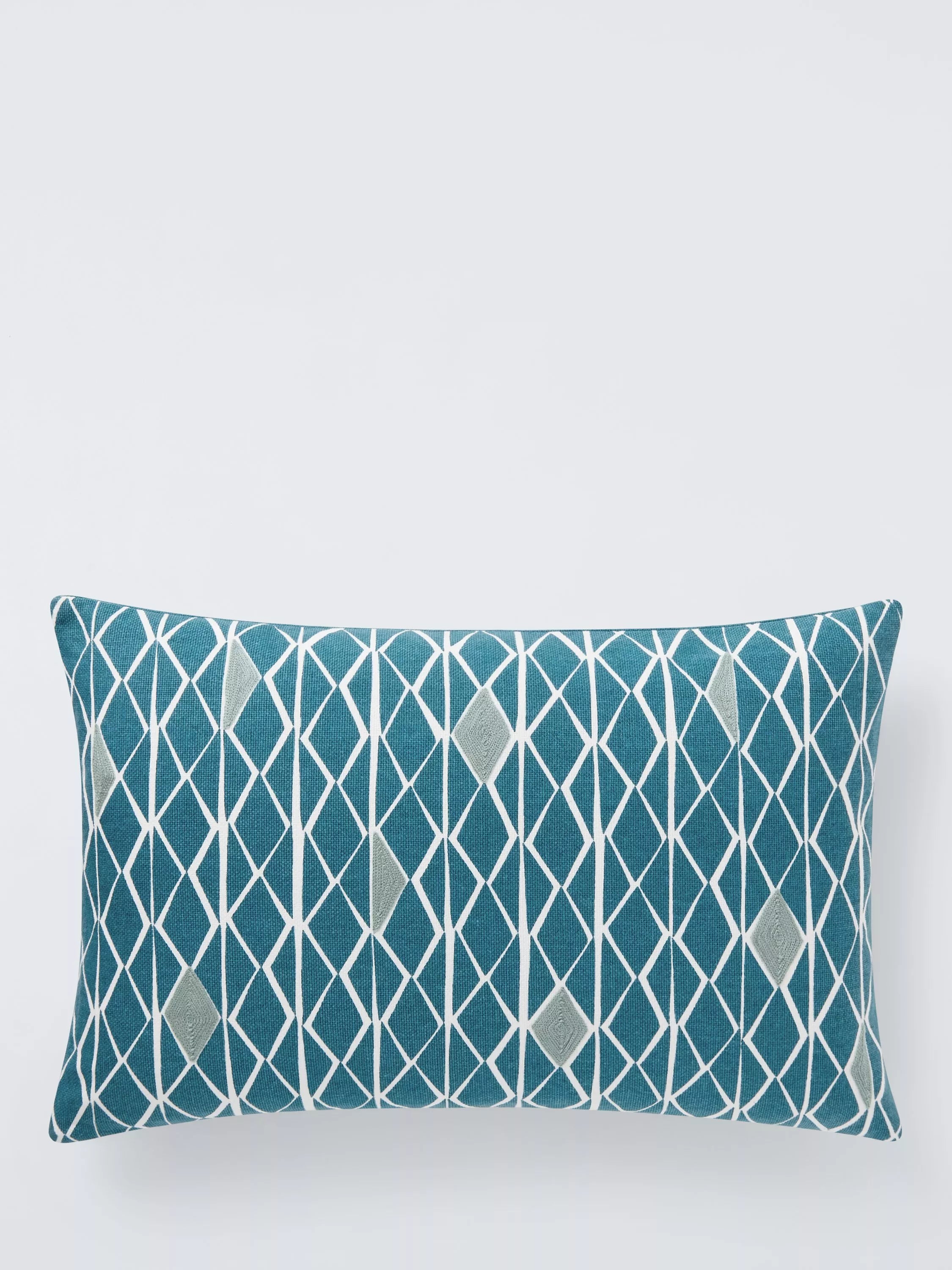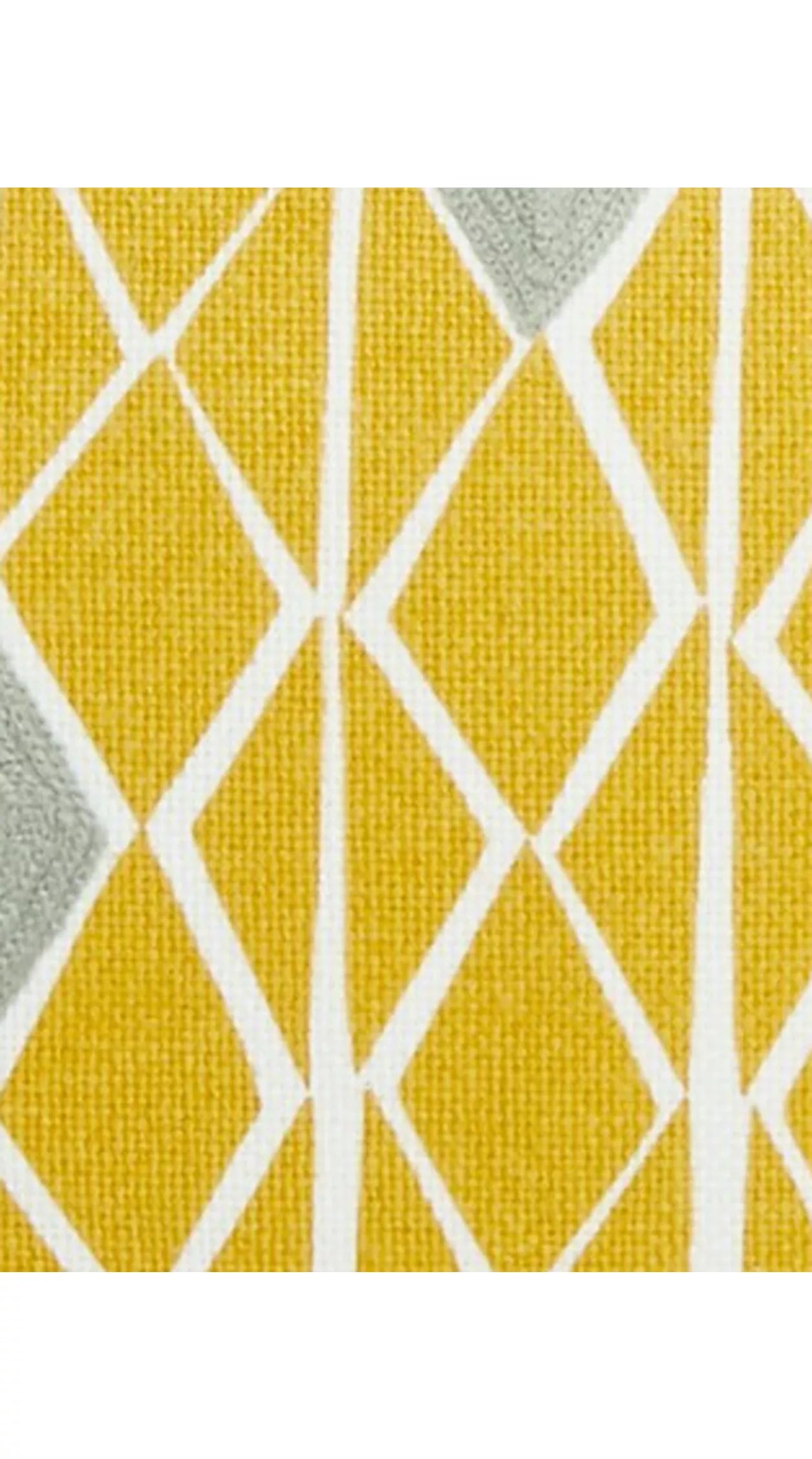 A contemporary, woven geometric with hand guided, chain stitched diamonds in a contrasting colour.