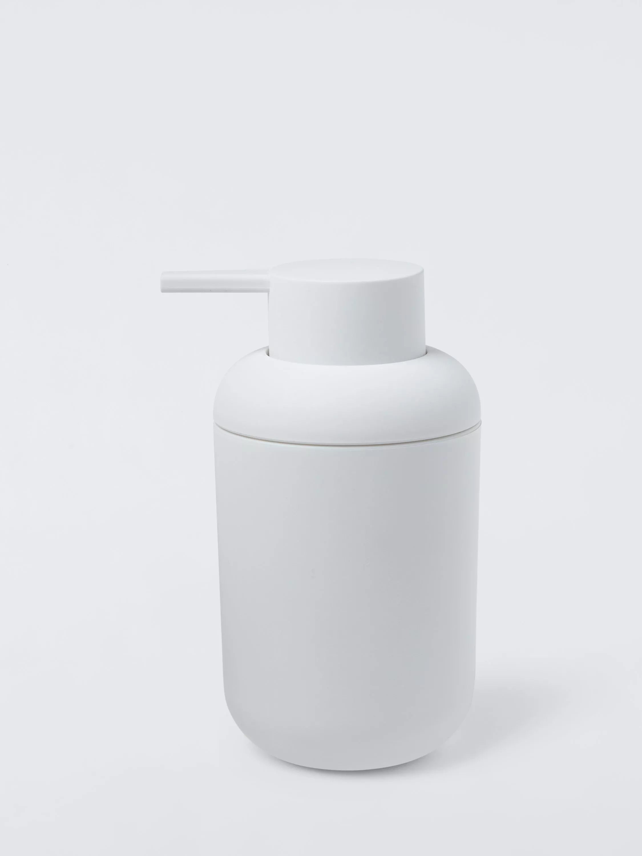 A great-value plastic soap dispenser with a rounded design, perfect for your bathroom or kitchen.