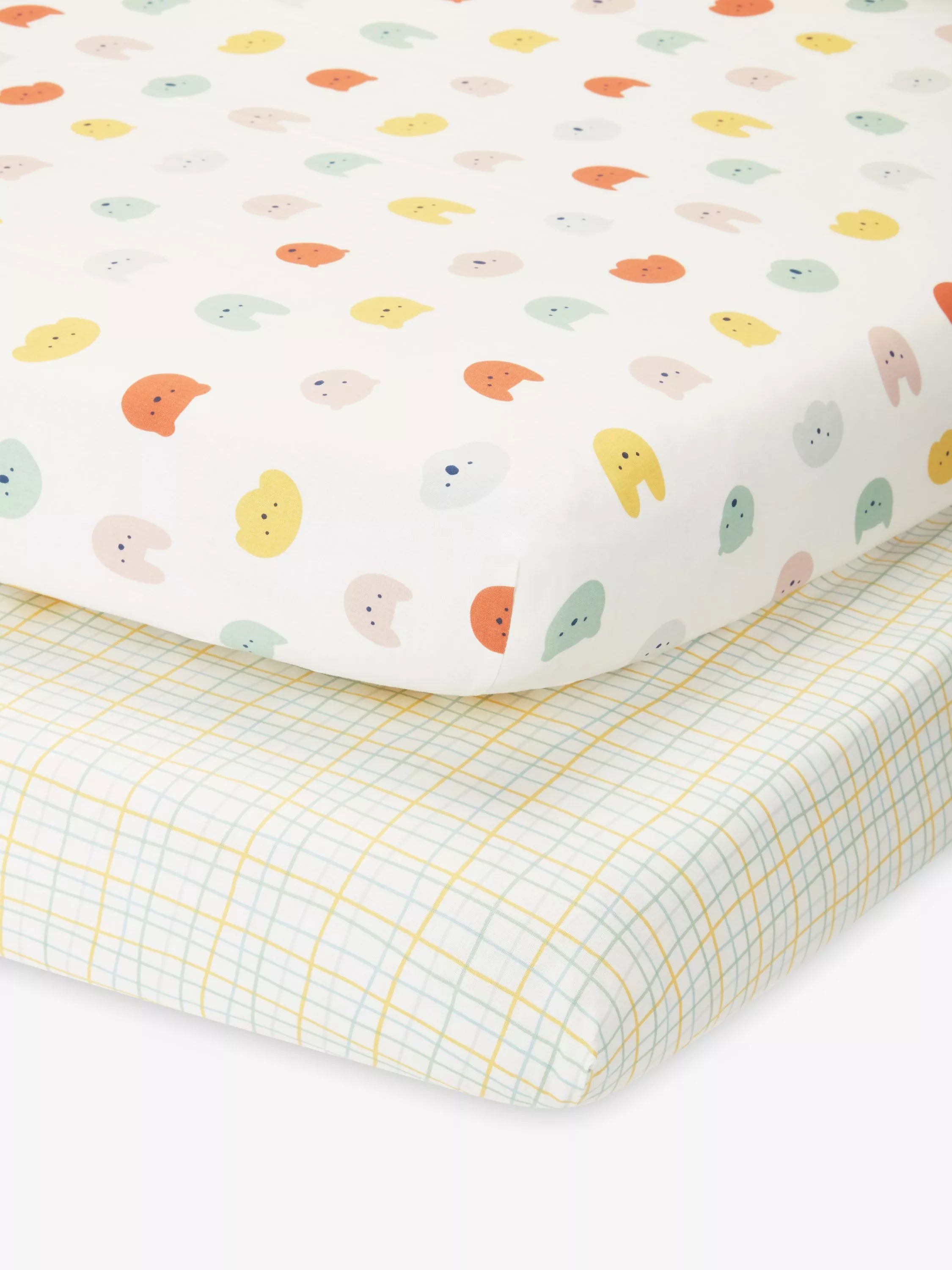 Invigorate your nursery with this two-pack of sheets from our ANYDAY collection. A key part of a good night's sleep, our fitted cot and cotbed sheets are made from soft and breathable cotton that is kind to delicate skin.