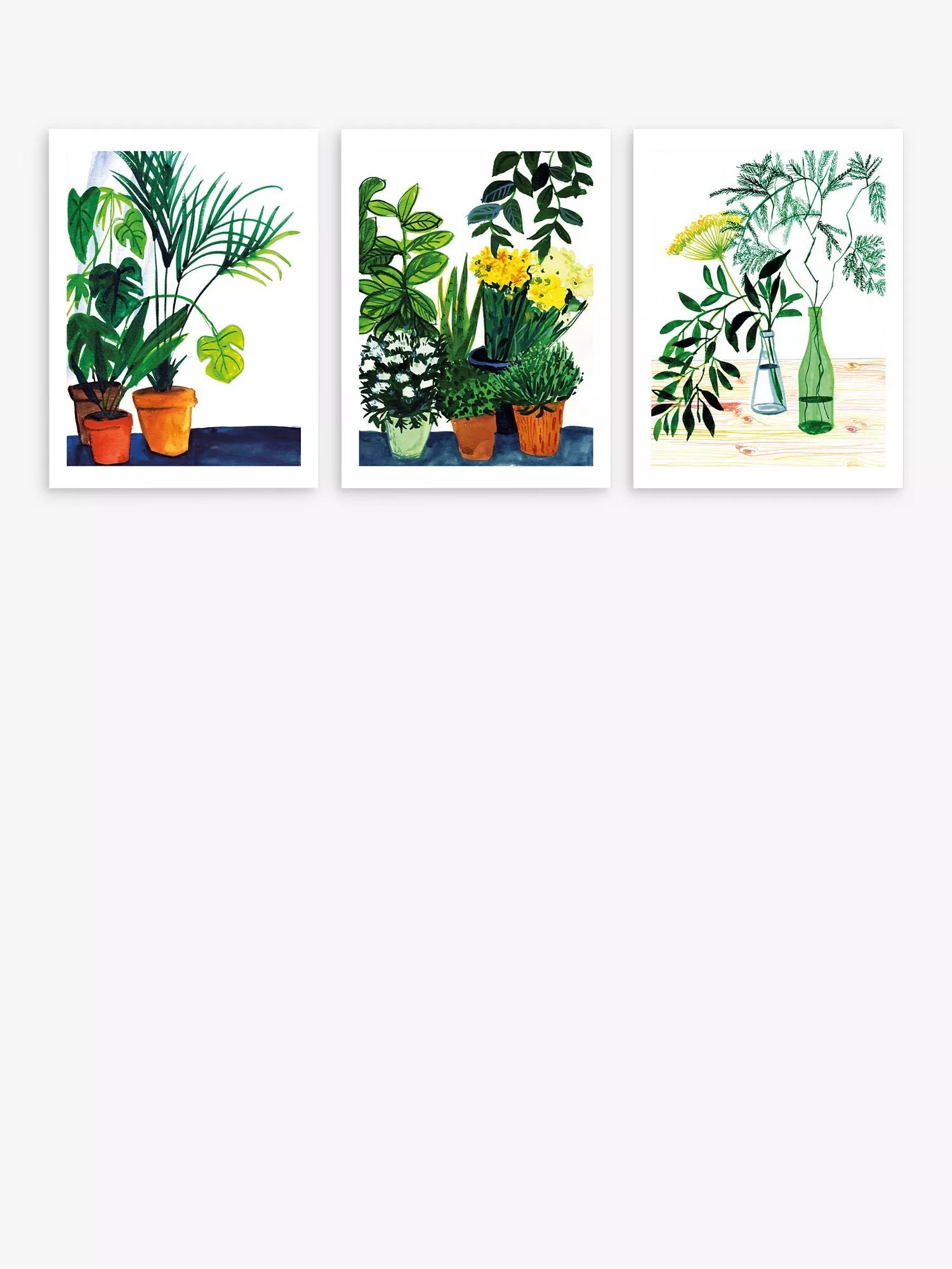 Create a gallery wall of botanical prints with this colourful trio from artist Marta Chojnacka. Made in the UK, the three contemporary prints are unframed and require frames for wall-mounting.