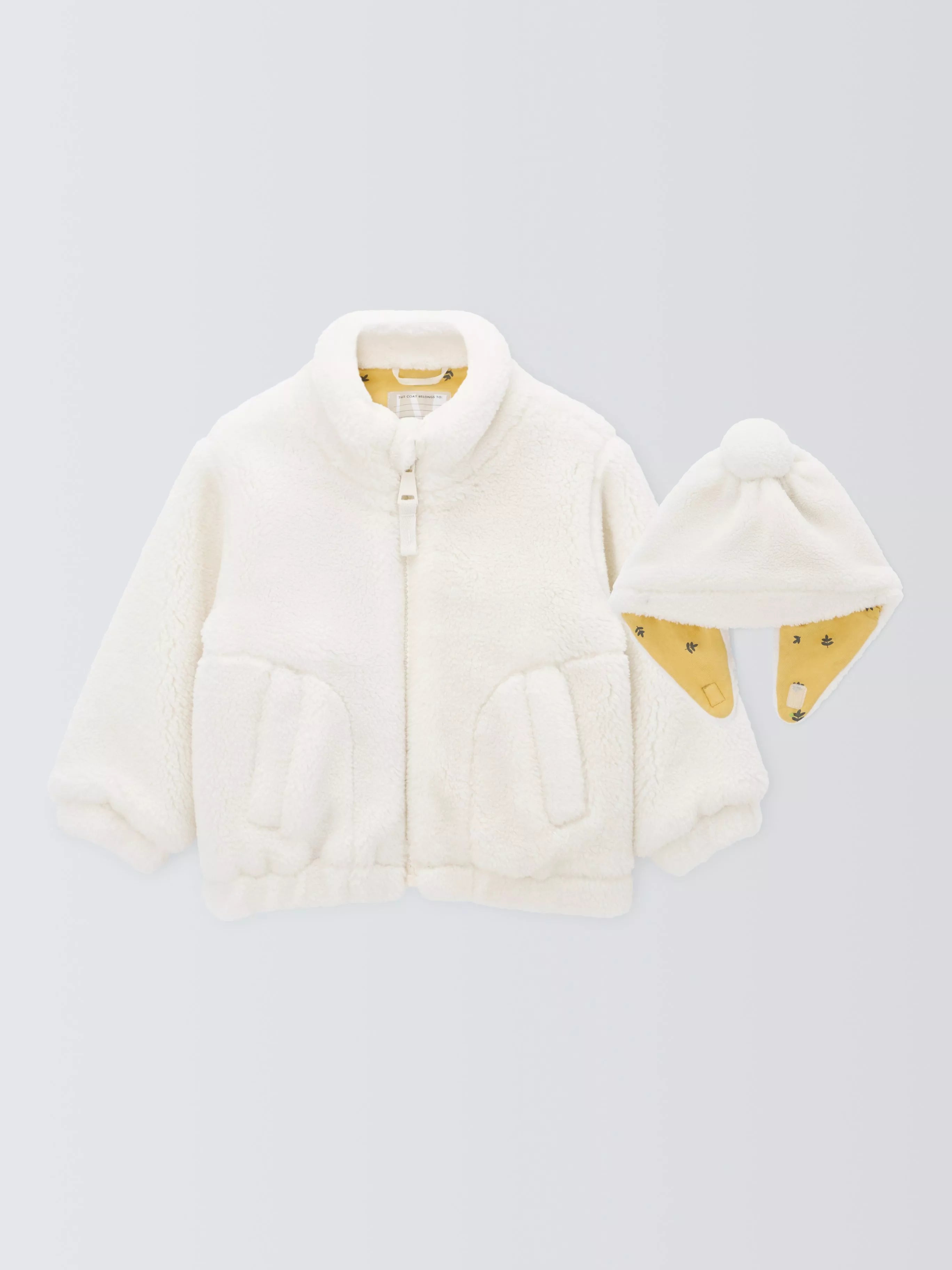 Wrap your little one in ultimate coziness with this adorable John Lewis baby borg fleece jacket and hat set, perfect for keeping them warm and stylish during chilly weather. This charming cream-colored set offers superior softness and comfort, making it a must-have for any parent.