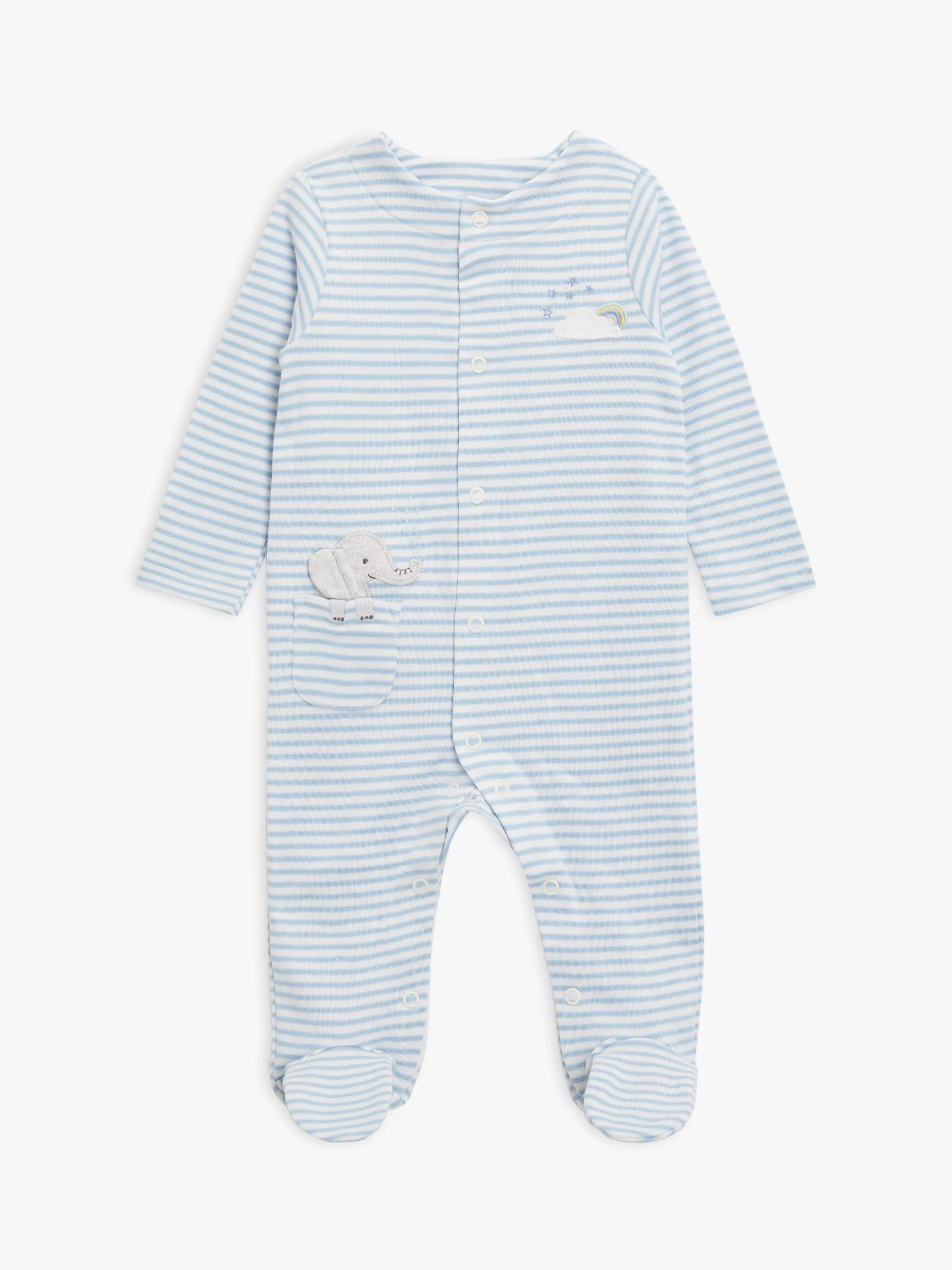 A super sweet suit for baby with an all-over stripe and elephant detailing. Designed with popper fastening to help with changing time.
