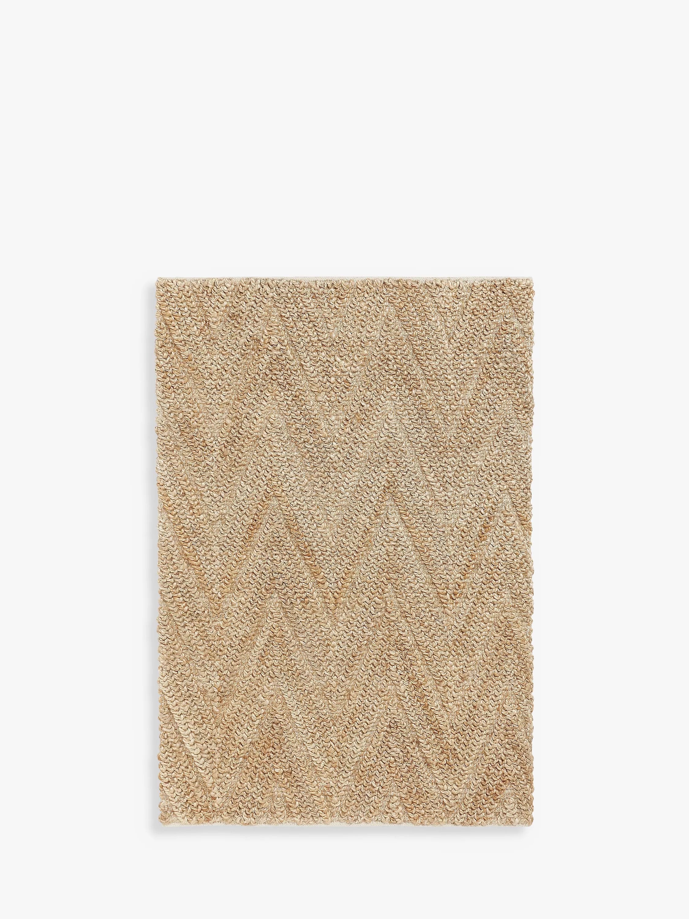 An alternative to just adding more colour to a room, this unusual jute rug has a textured style in a chevron shape. Very thick, this rug is tightly woven to reduce shedding although some may occur at first.