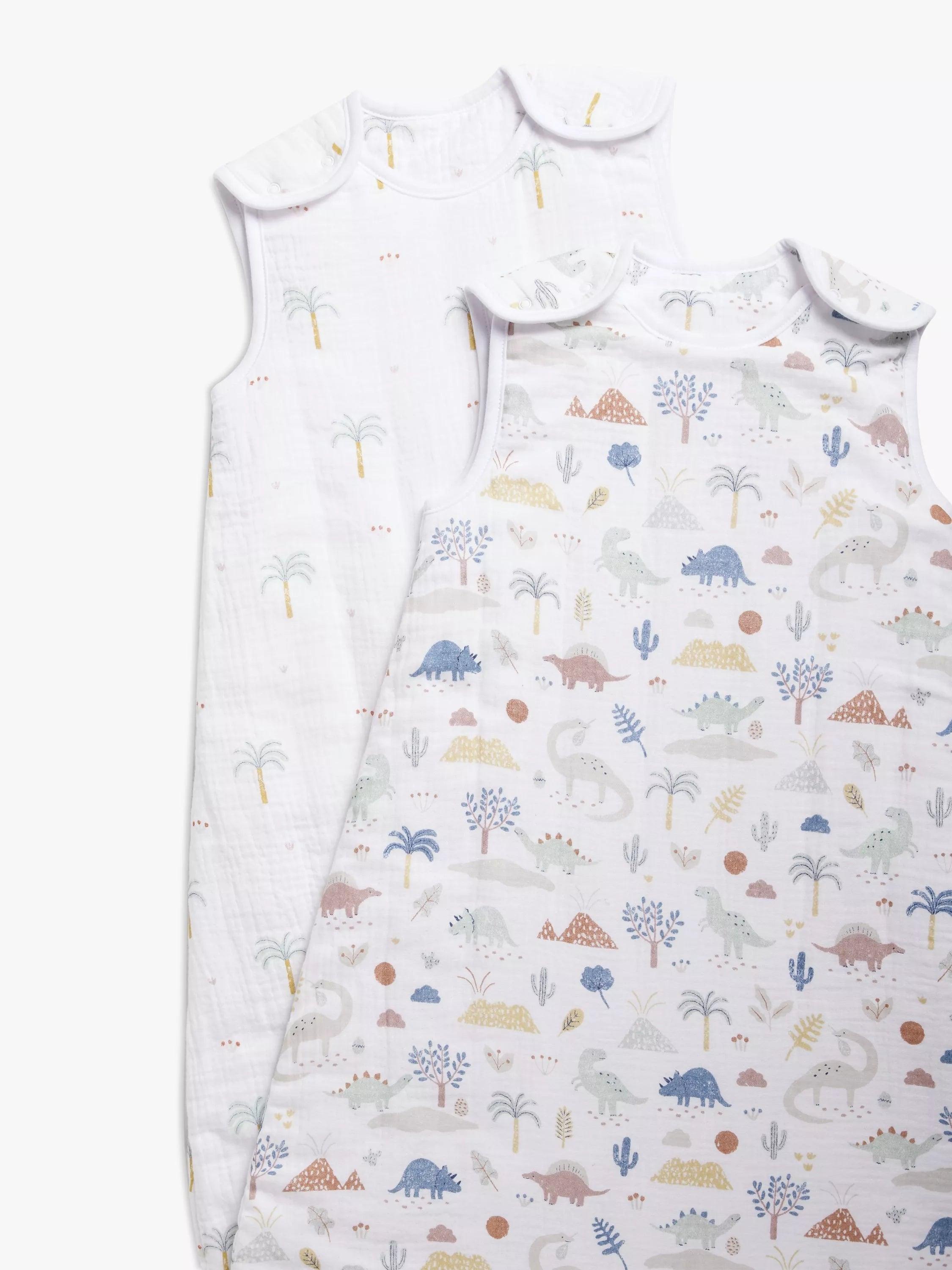 Coming in a handy pack of two, one bag is covered in the coolest dinosaur print, and the other, a sweet palm print.