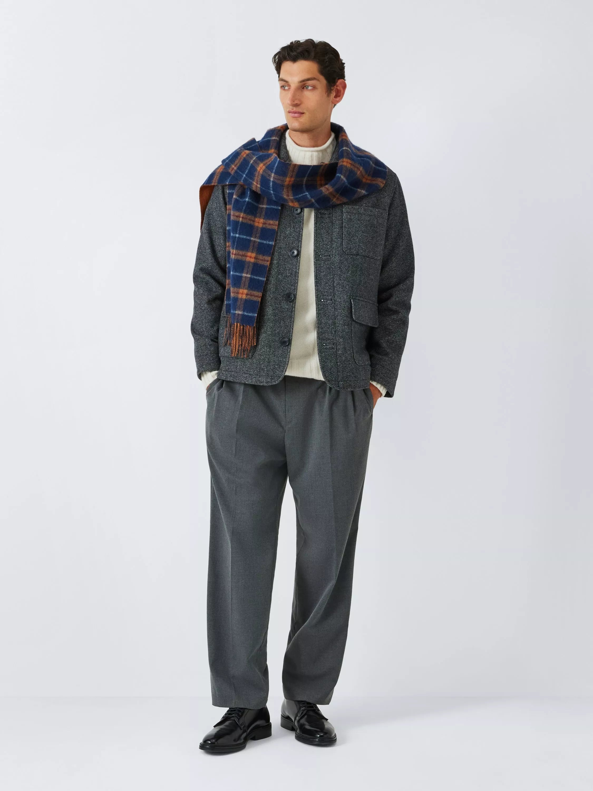 Get set for autumn. Wrap up against the elements with our cosy wool scarf. Soft, warming, and comfortable, it's finished with tassels and features a distinguished check design, handsomely topping off any cold-season attire.