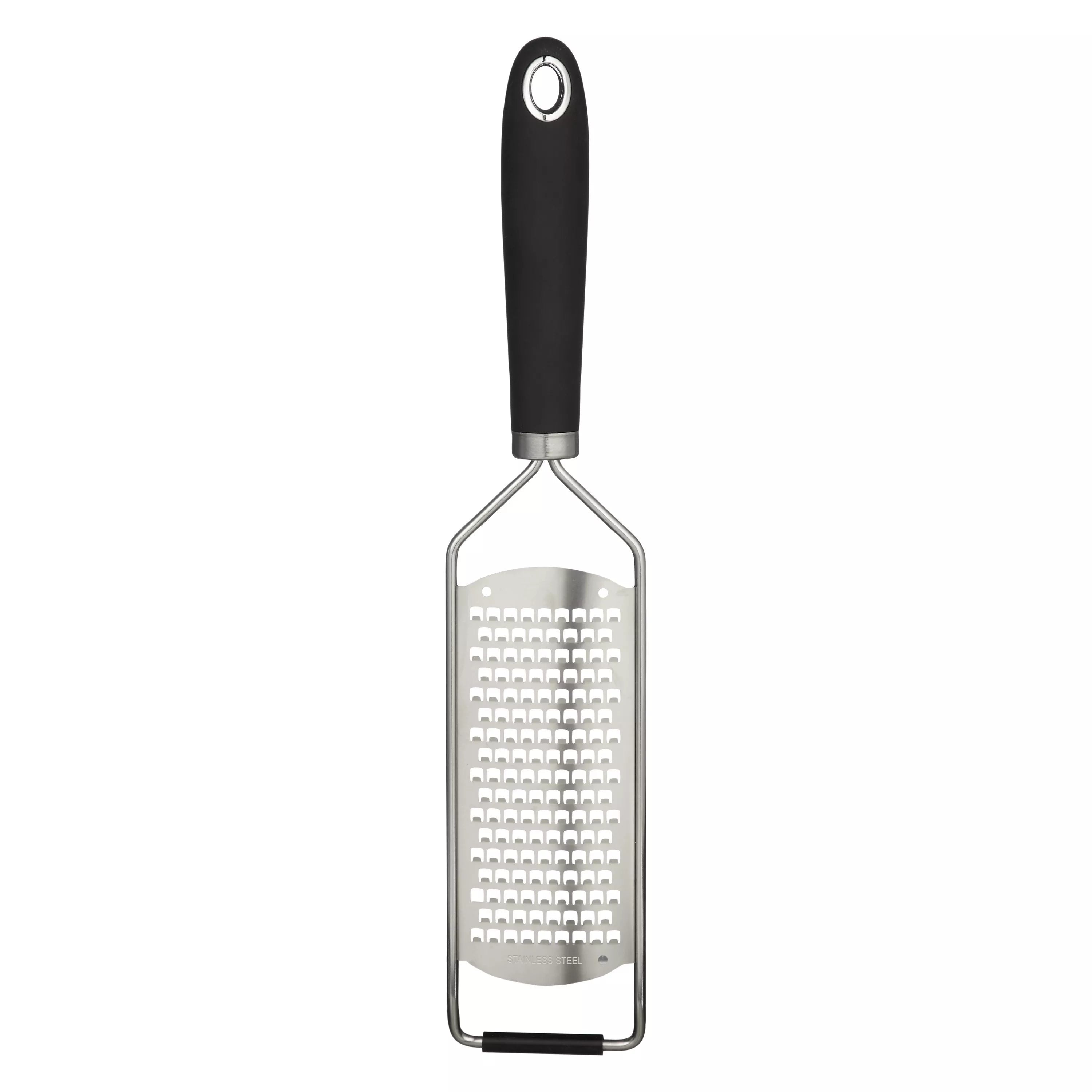 A handy tool for cooking and baking, this grater is made of 430-grade stainless steel with a soft-grip, non-slip TPR handle. Its acid-etched blades provide long-lasting sharpness. Dishwasher safe, it's easy to clean and has a hanging hole for storing.