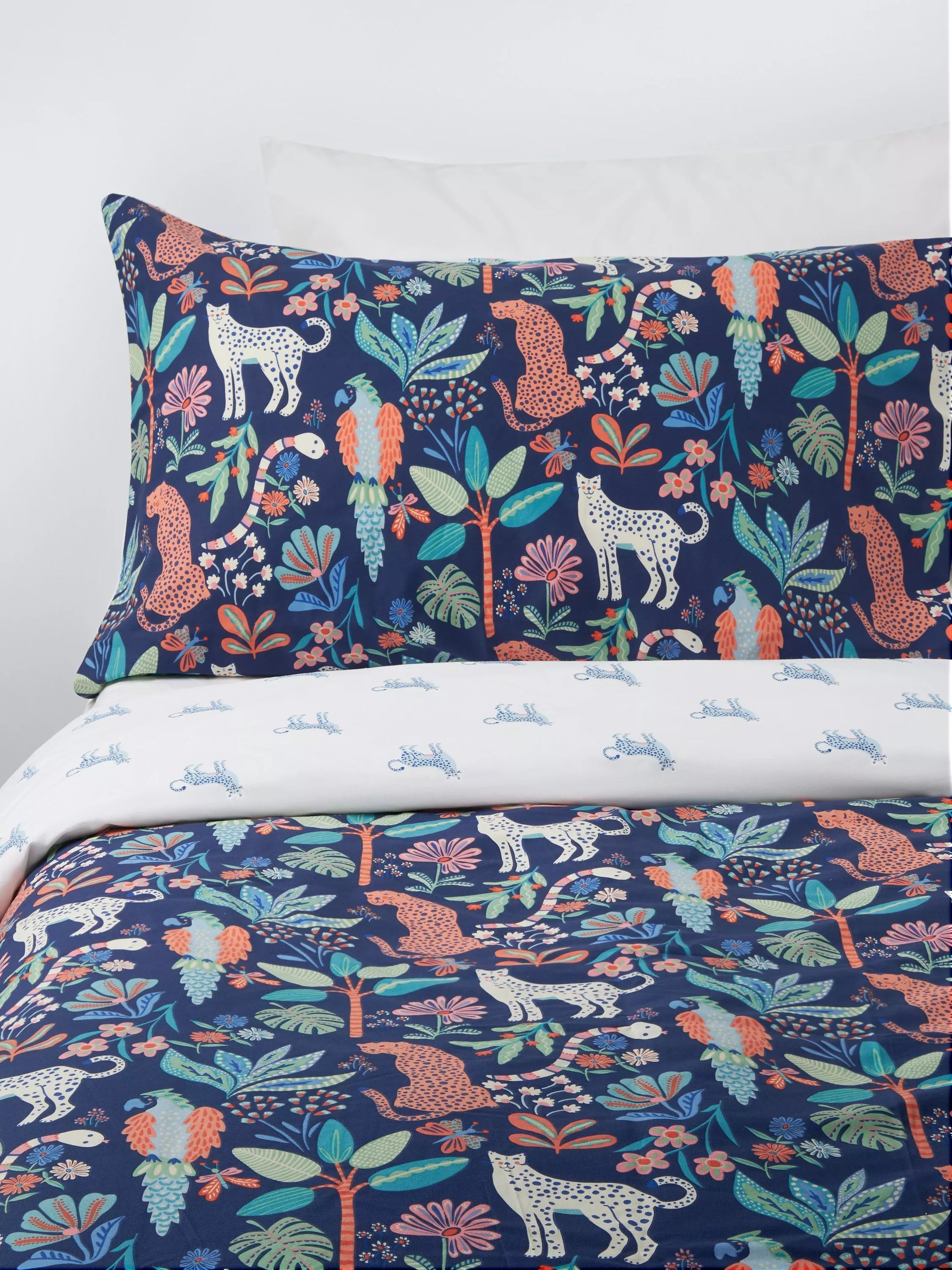 This colourful duvet cover and pillowcase set is made from pure cotton that has a soft handle and breathable feel. It features a secondary big cat print on the reverse, allowing you to change their sleep setting after every wash.