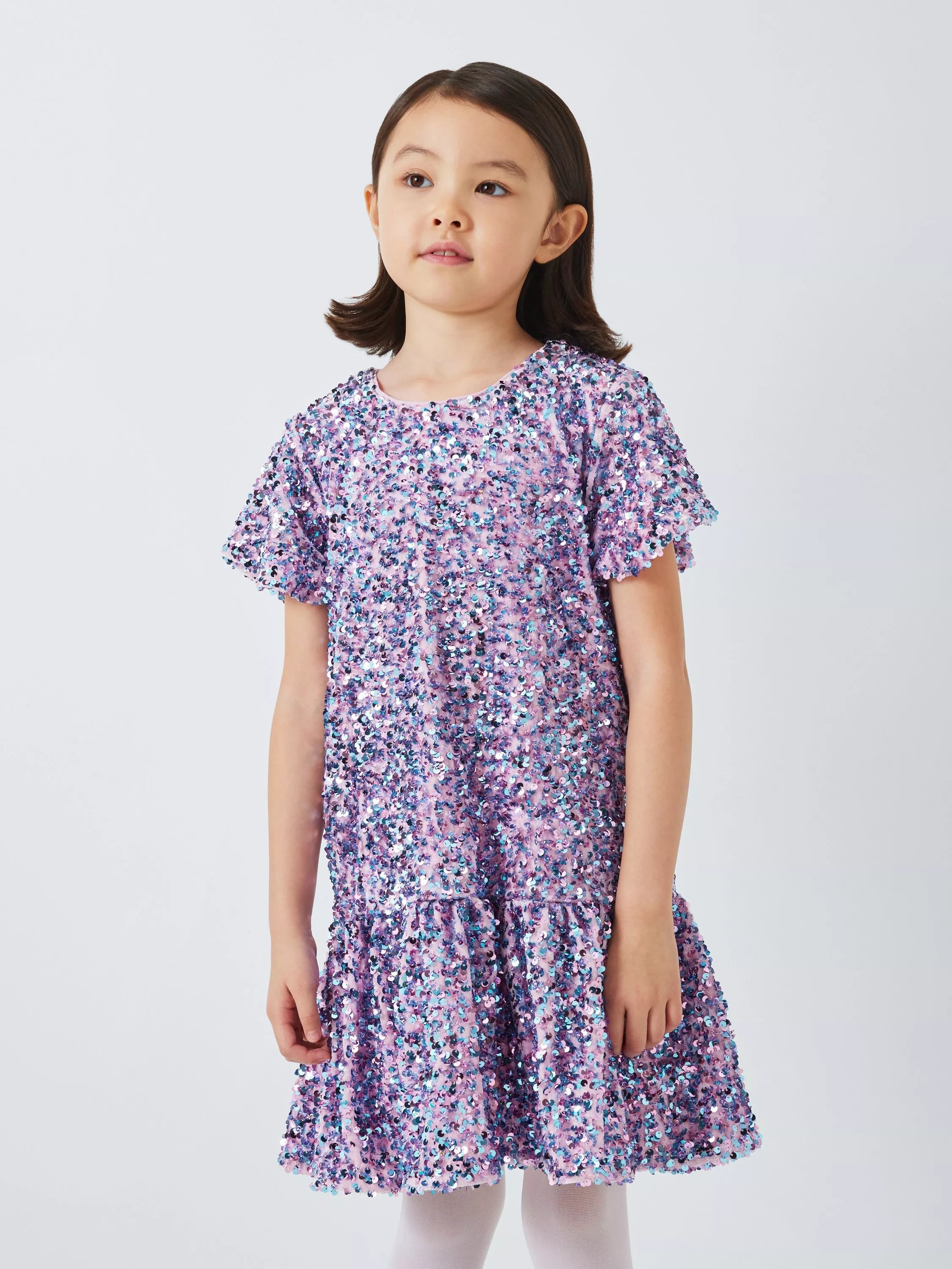 A short sleeve drop waist dress in velour with all-over multi sequins. The dancefloor won't know what's hit it! The button opening to the centre back makes dressing a breeze.