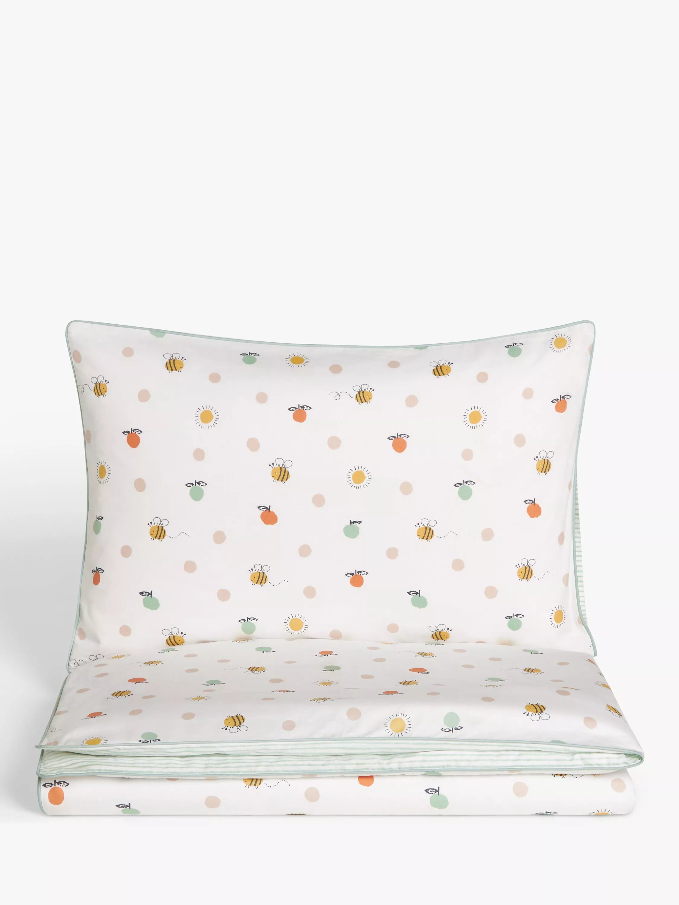 Inspire their dreams with this attractive duvet cover and pillowcase set from our Oh My Darling collection. A reversible style, one side has a fun been and fruit print with the other covered in classic stripes. This light and versatile style works well with various nursery themes.