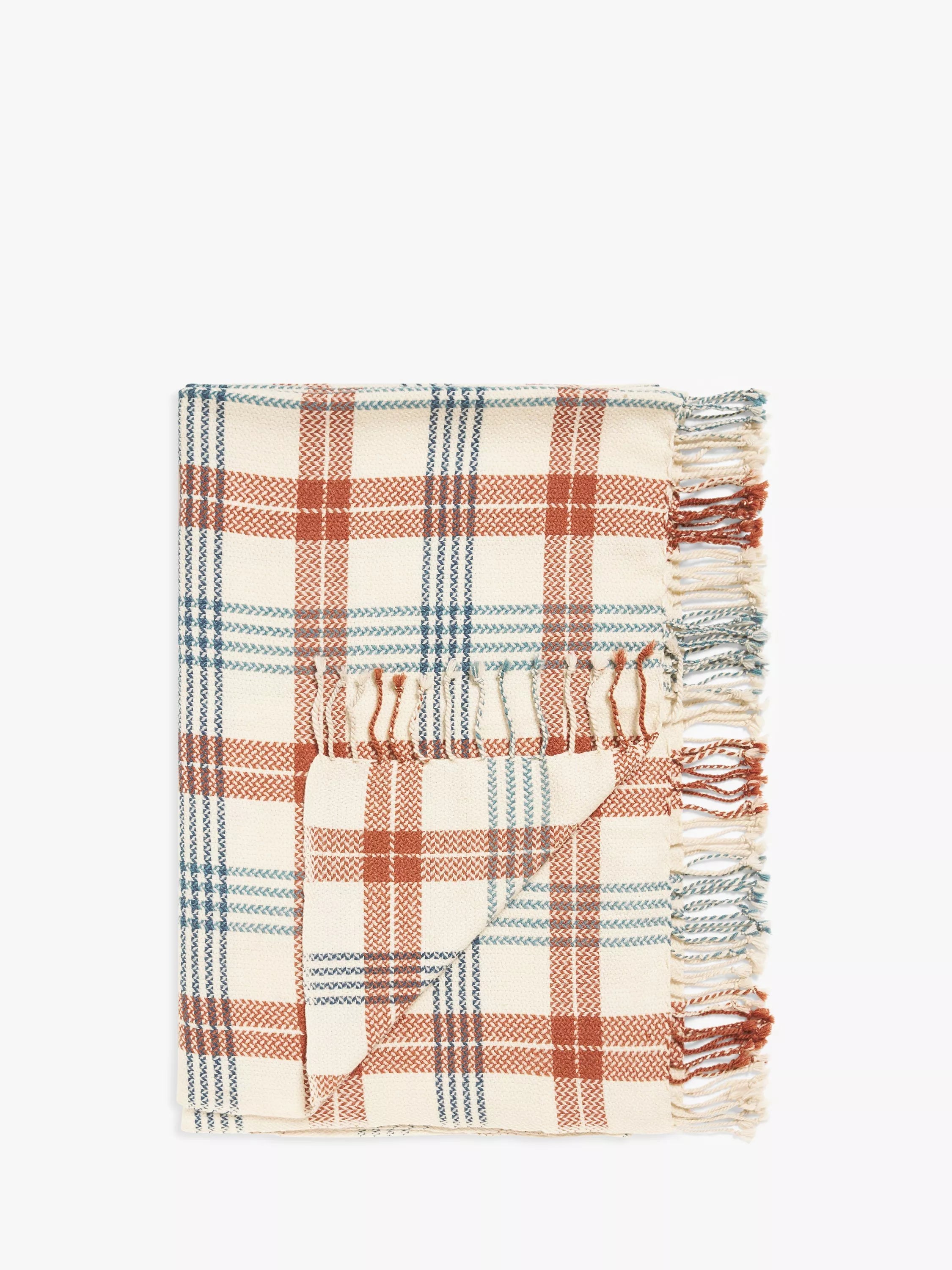 This herringbone plaid check throw is woven from a blend of wool and polyester and comes in two shades that are perfect for changing up your bedroom look this autumn.