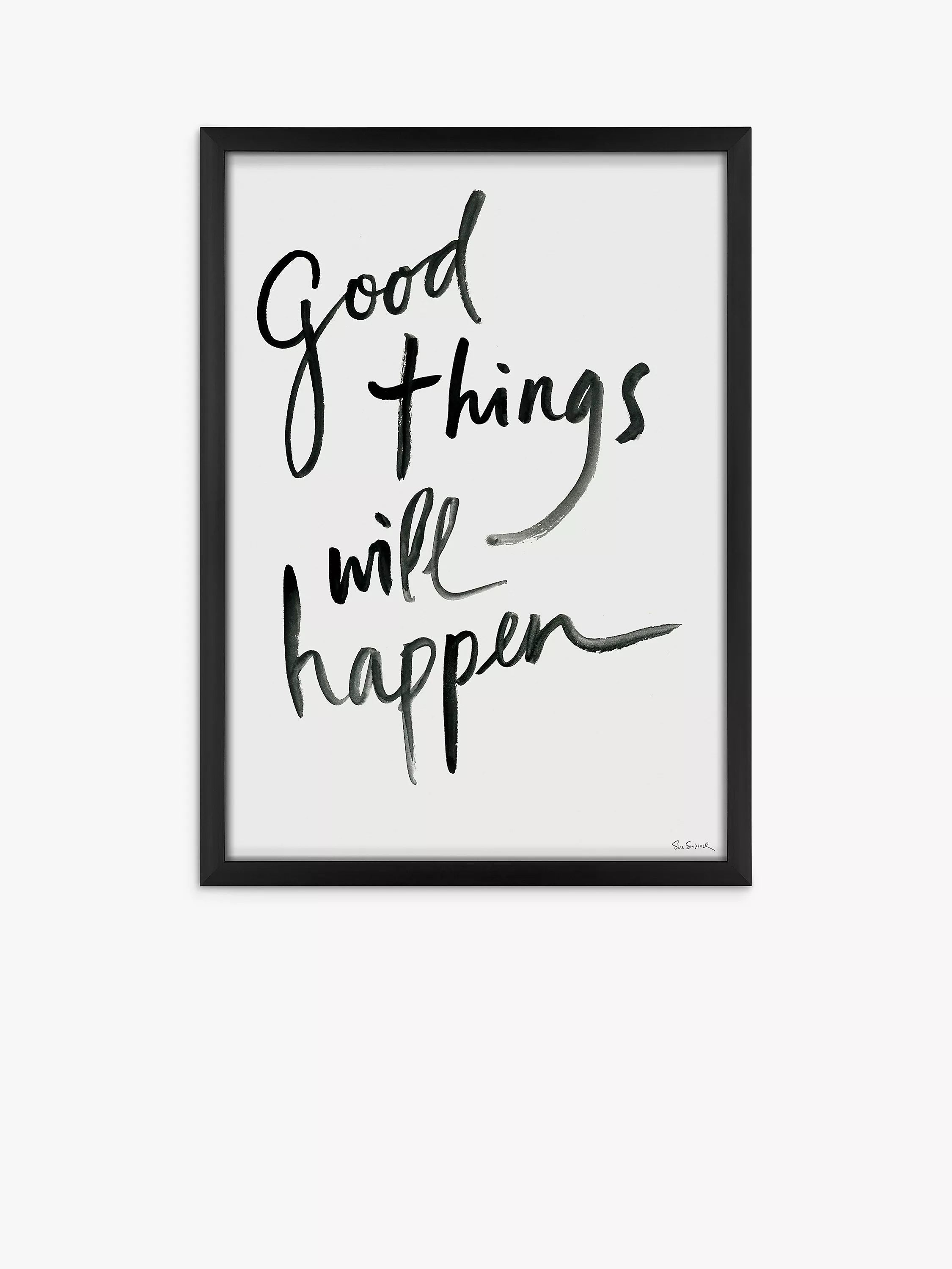 Optimistic slogan print, 'Good Things Will Happen' by Sue Schlabach. Glazed and framed, ready to hang on your wall.