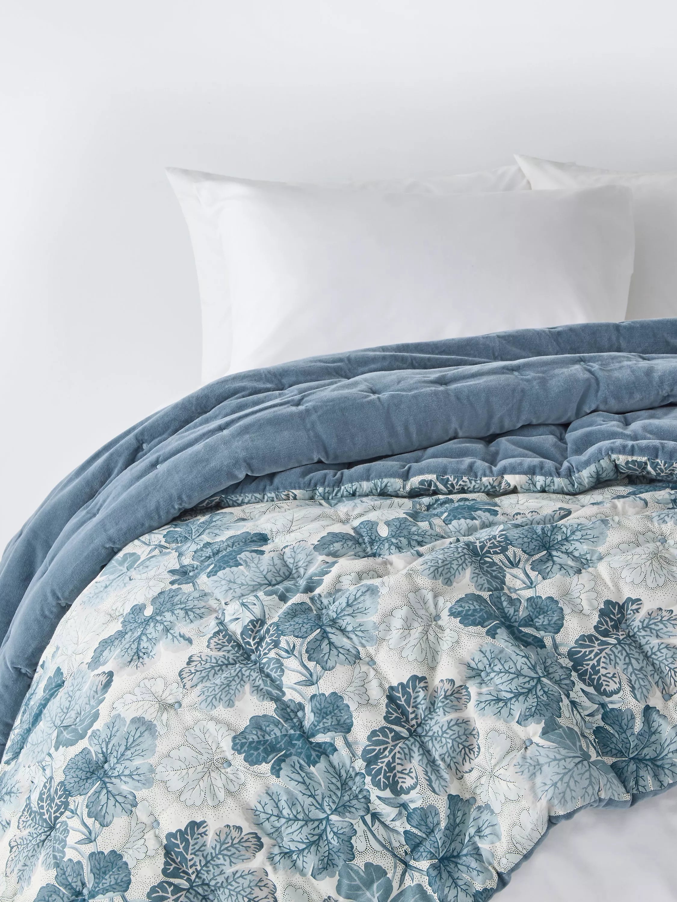 Beautiful quilted bedspread with a geranium print. Woven from 100% cotton, it's fully reversible for versatility.