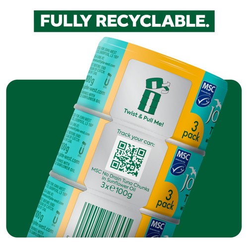 Introducing No Drain ECOTWIST® multipack – our most eco-friendly, faff free option yet! Featuring an aluminum SmartStrip®, it’s easy to open with a simple twist. Fully recyclable, it eliminates messy plastic waste. The new can has improved the quality of the tuna keeping it chunky and as succulent as ever. New can, Same No Drain.