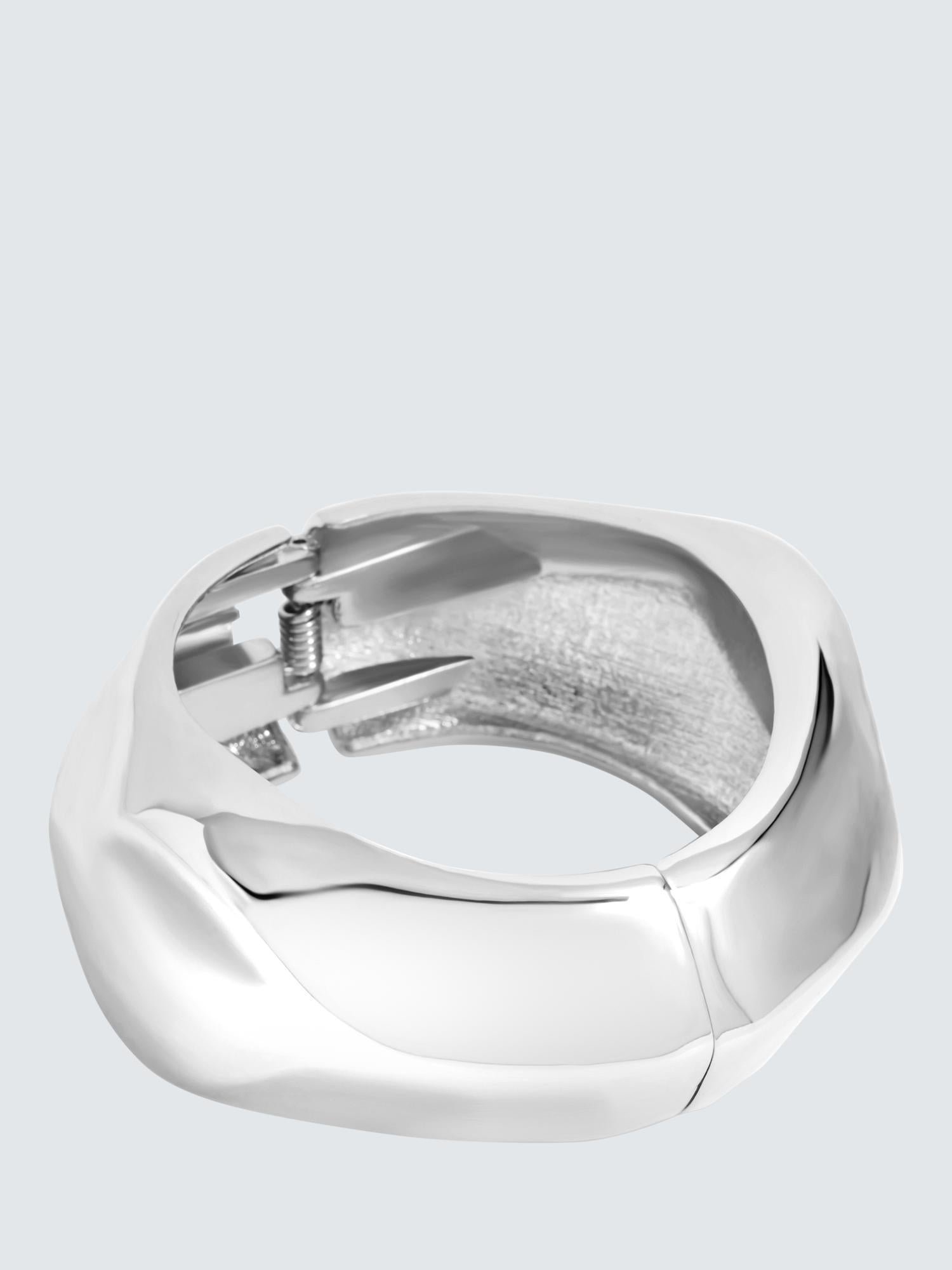 Jon Richard presents this angular dome cuff in a polished silver finish, sized at 32 by 60mm for a substantial presence. This sleek bracelet delivers a truly modern aesthetic, ideal for wearing solo or layering effectively with other items. It provides a strong, contemporary statement for your collection.