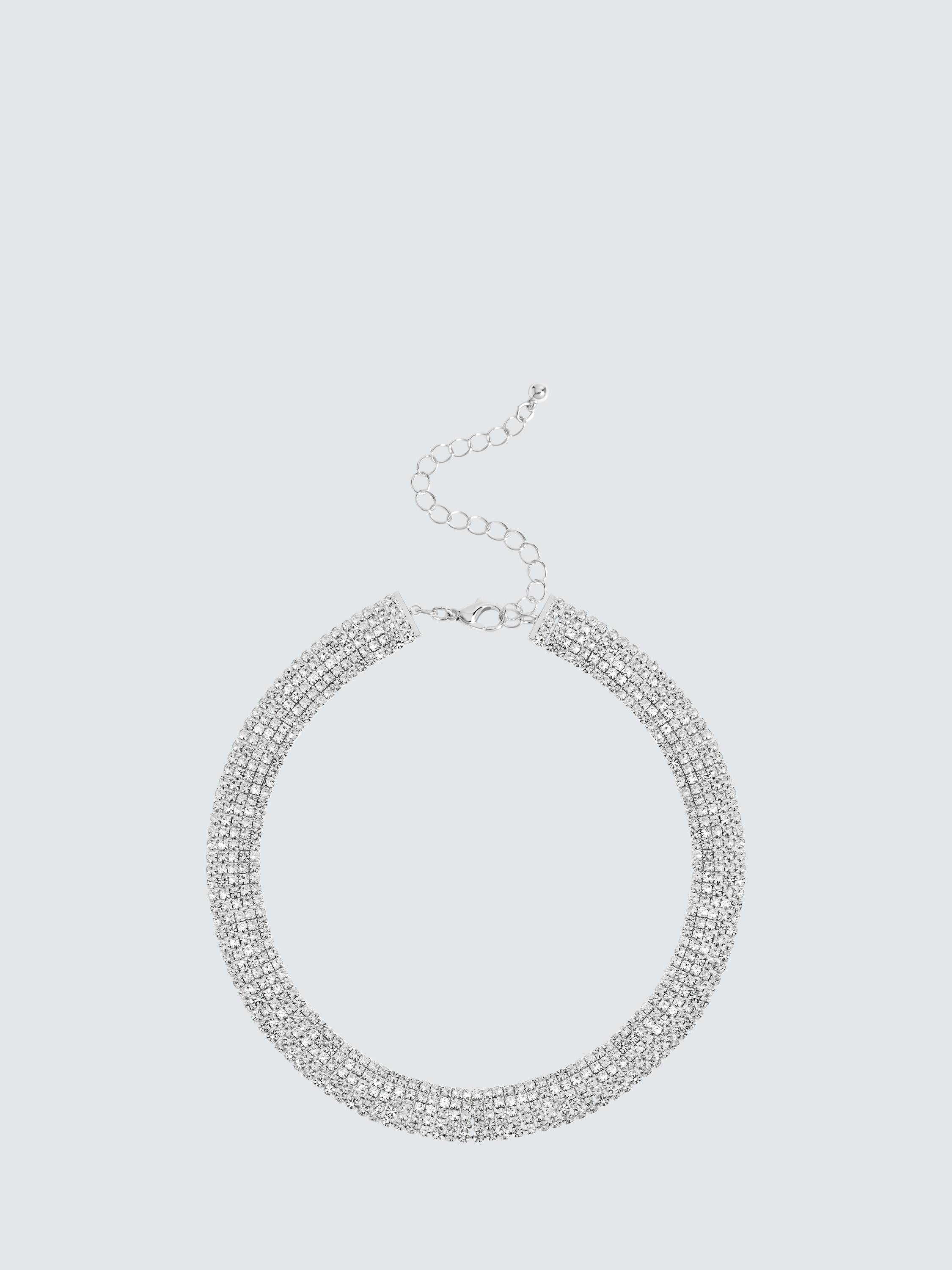 Jon Richard Crystal Multi Row Choker Necklace Silver Tone