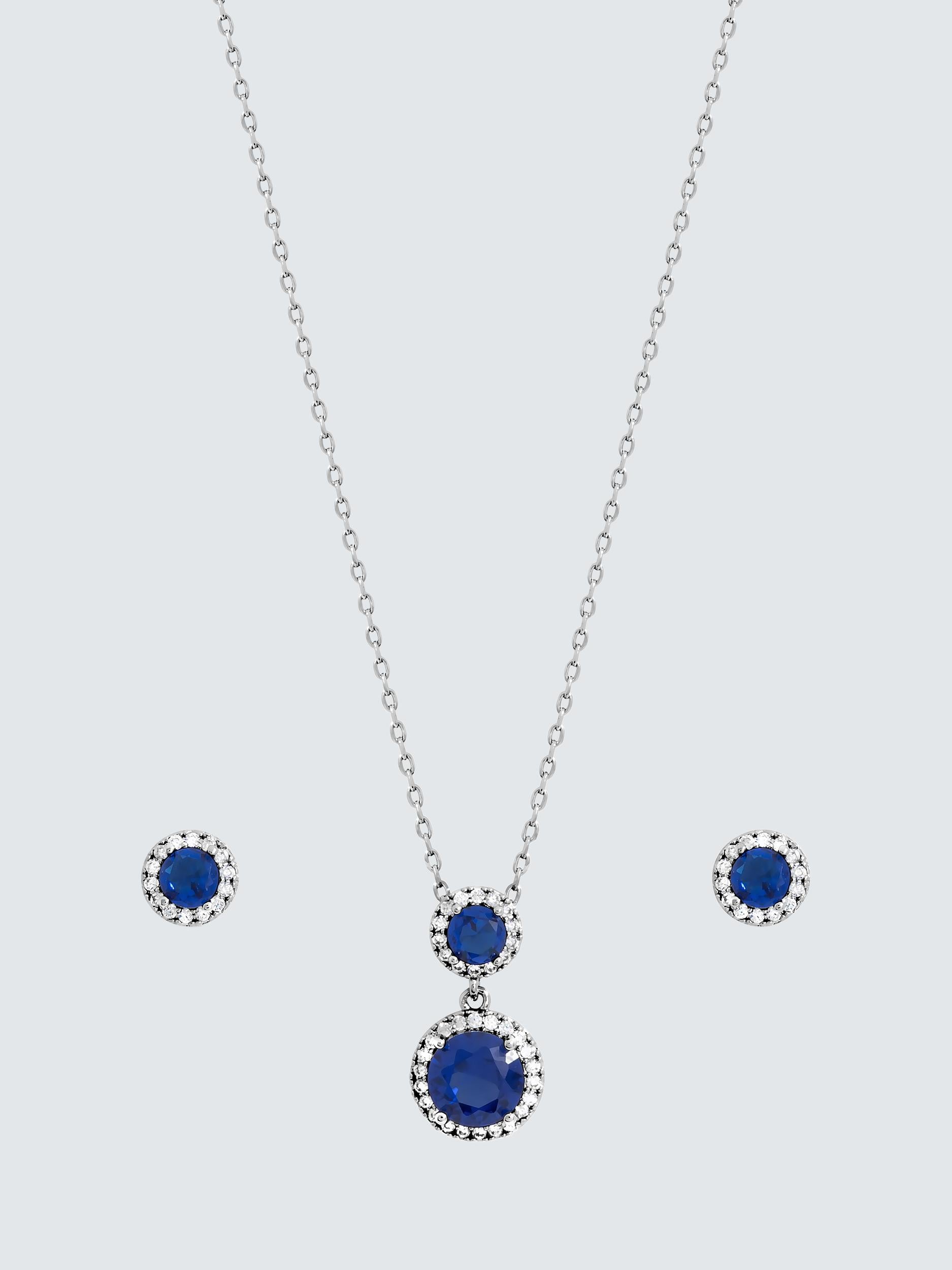 The Jon Richard Cubic Zirconia Double Halo Sapphire Drop Set is a premium rhodium plated item. It features striking sapphire drops encircled by cubic zirconia stones in a detailed halo pattern. This elegant jewellery collection piece offers remarkable visual depth and impressive shine for special events. Enjoy this fine look.