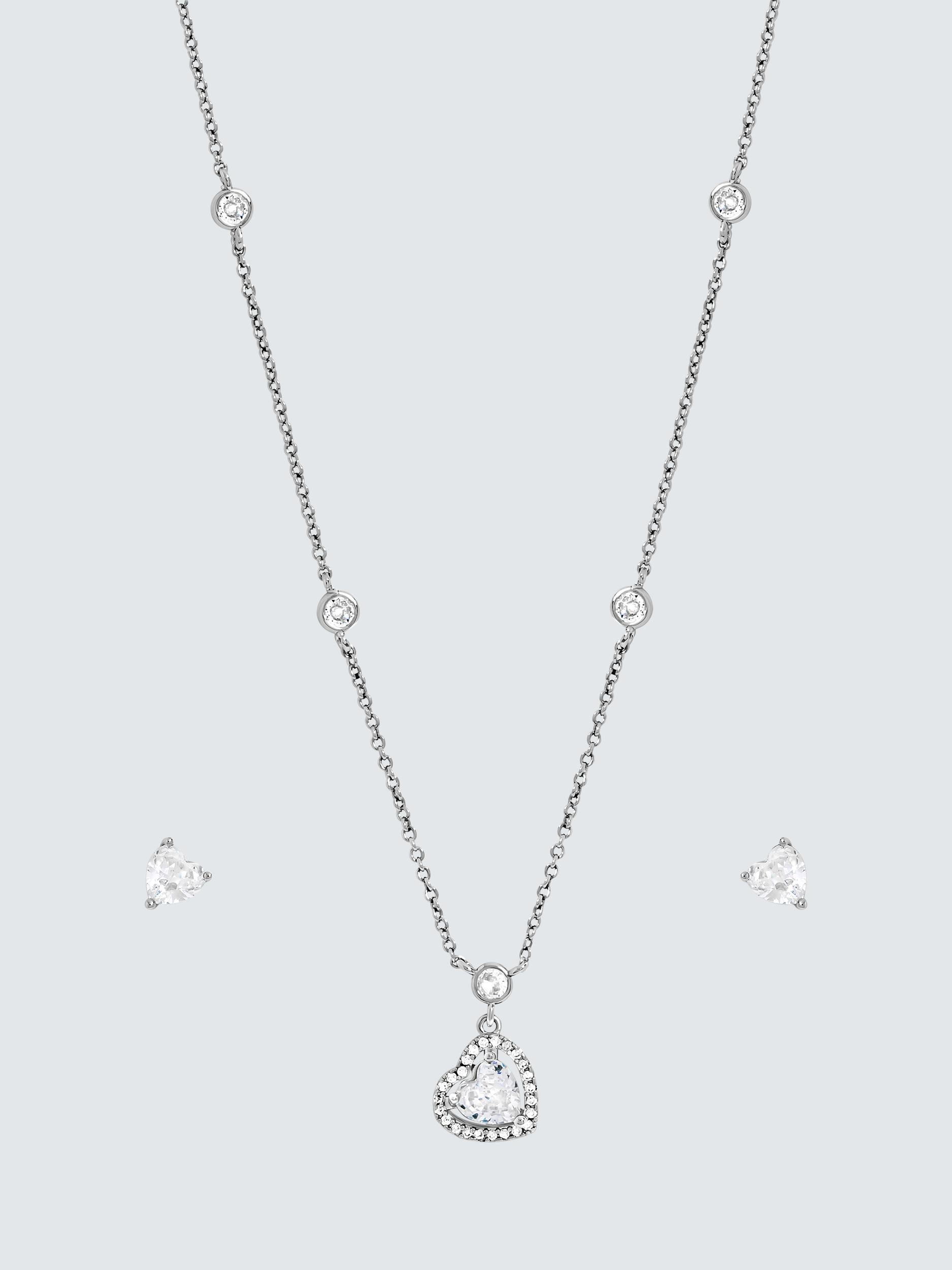 The Rhodium Plated and Cubic Zirconia Heart Drop Box Set is designed to bring romantic sparkle to any occasion. Featuring a delicate heart design, framed with shimmering crystals and finished in polished rhodium plating, this beautiful set adds a timeless touch of elegance. The earrings are suitable for pierced ears only.