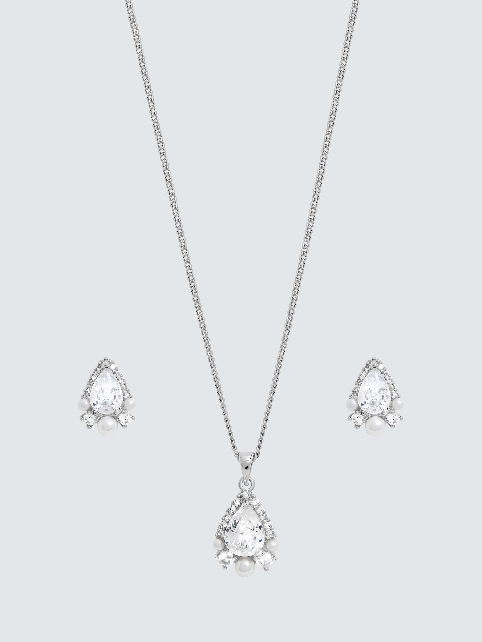 Jon Richard Lustrous Pearl & CZ Drop Earring Necklace Set