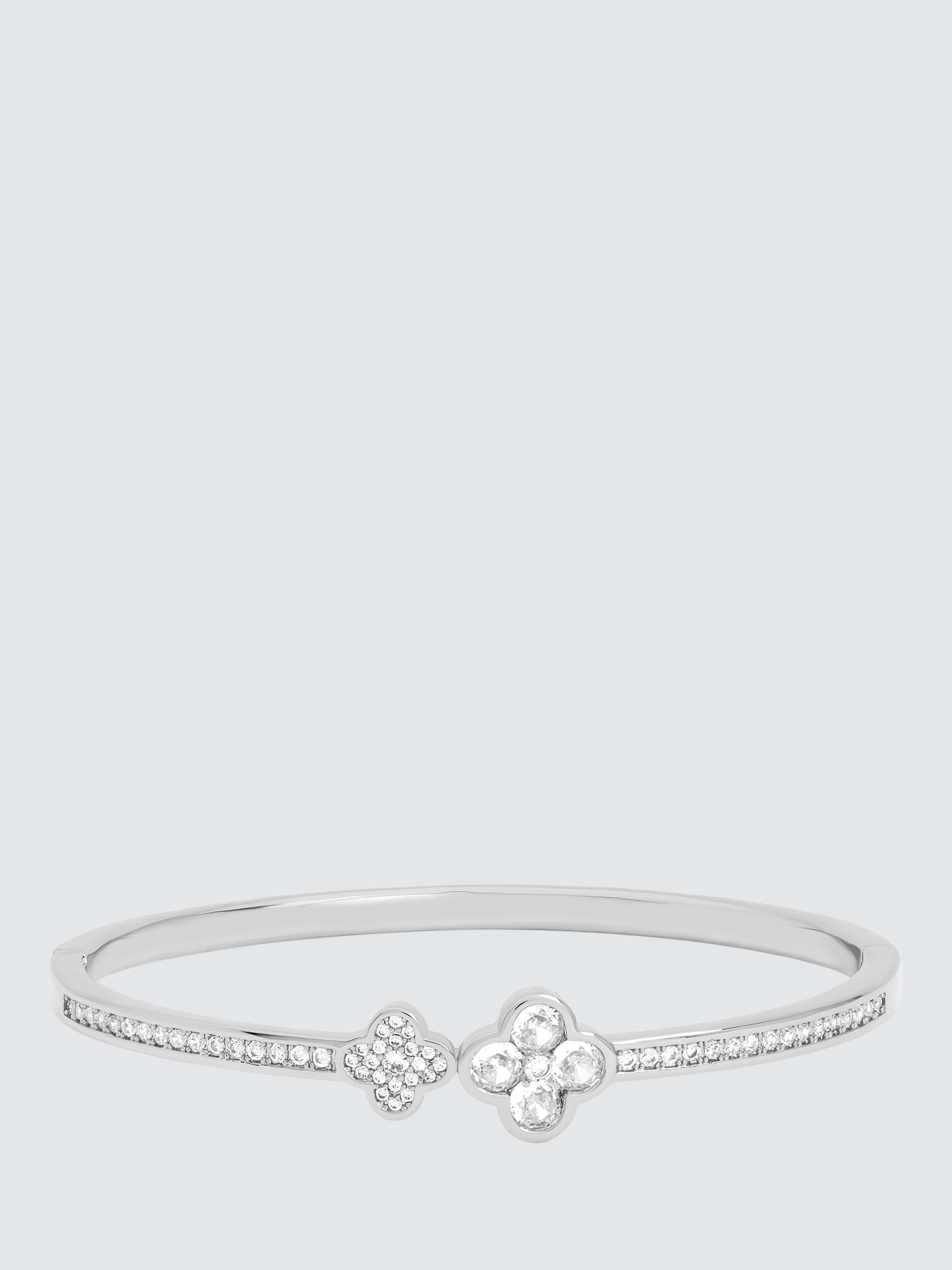 Jon Richard Crystal Pave Clover Bangle, Rhodium Plated