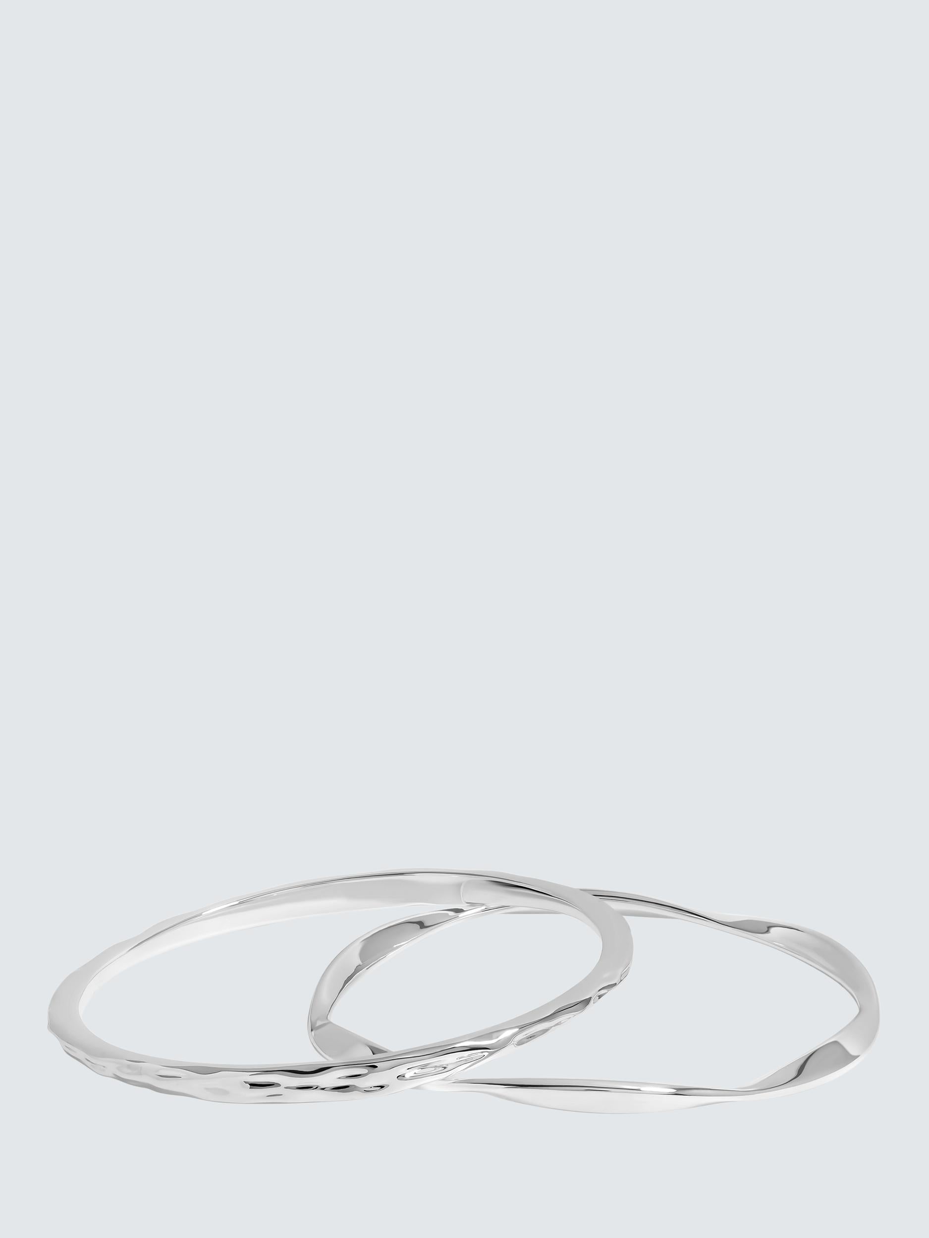Two sleek bangles with a smooth, polished finish. These versatile bangles can be worn together for a layered look, or individually for a subtle touch of elegance.