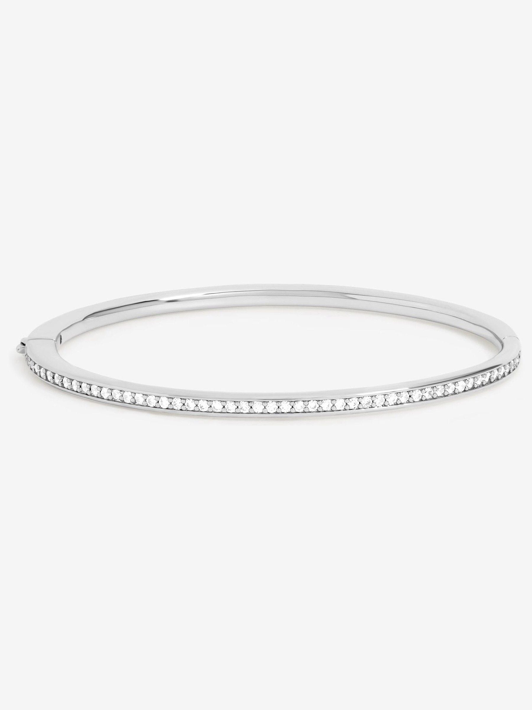 Our Silver Plated and Pave Bangle is expertly finished, designed to bring a touch of glam to your everyday style. Featuring striking pave Crystals made to sparkle and finished in rich silver plating, this statement piece adds a touch of timeless sophistication. It’s the perfect addition to any jewellery collection. Fastening: Lobster Clasp. Width dimension: 50mm. Length dimension: 204mm. Material: Silver Plated Basel Metal.