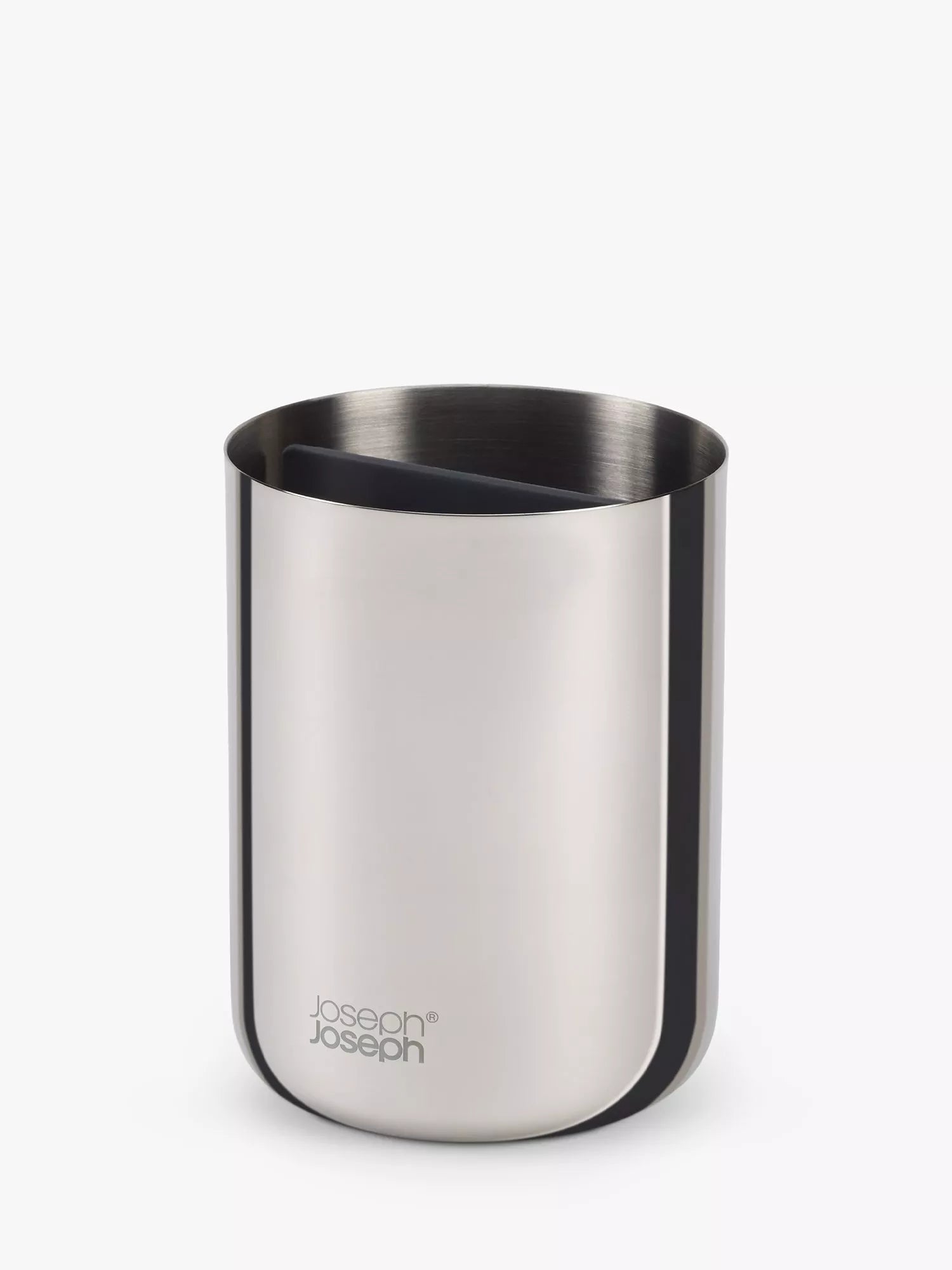This smart toothbrush caddy brings an elegant touch to the bathroom and provides organised storage for a variety of oral care items, such as manual/powered toothbrushes and toothpaste tubes. It features a handy divider, a polished stainless-steel finish and dismantles for easy cleaning.