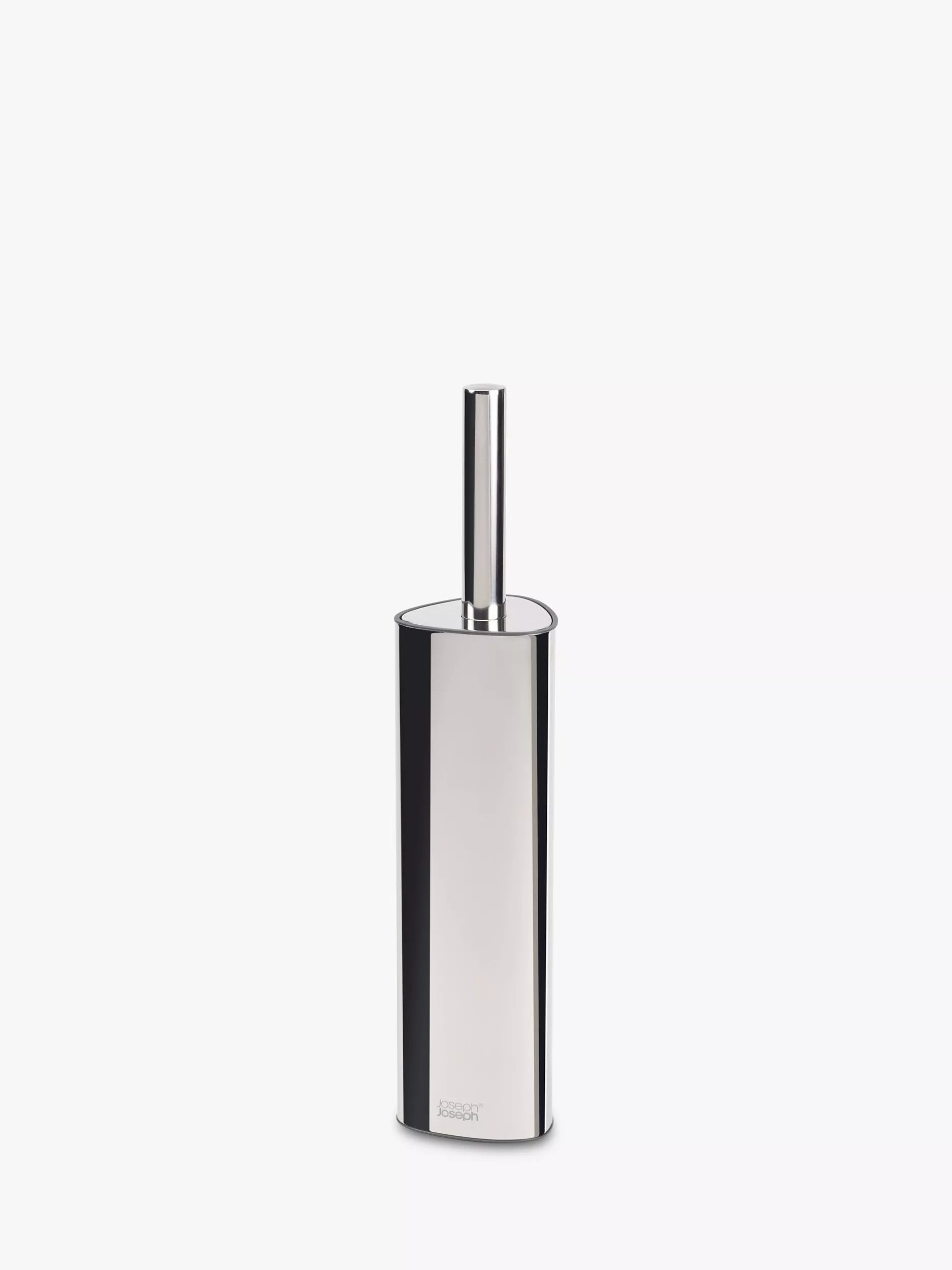 This advanced toilet brush features a flexible, triple-action head that cleans in three directions at once. It has widely spaced bristles that prevent dirt clogging, allow liquid to drain quickly and are more durable than conventional-style bristles. It comes with a smart storage holder with a polished stainless-steel finish.