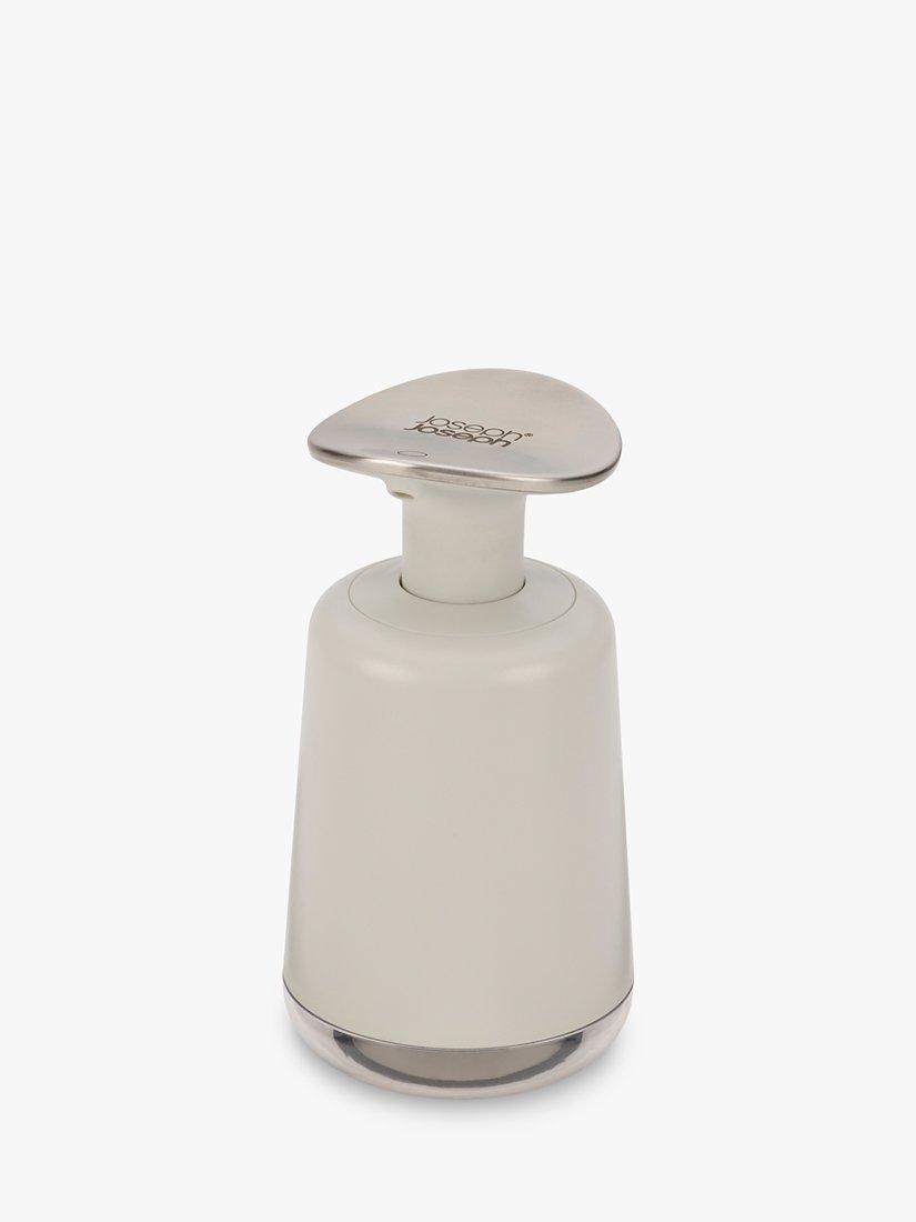 Joseph Joseph Presto Soap Pump in Light Stone offers a large 350ml capacity for your bathroom or kitchen sink area. Its innovative design promotes convenient, hygienic dispensing with an extra-large pump head built for easy use. This stylish accessory keeps soap readily available and looks excellent.
