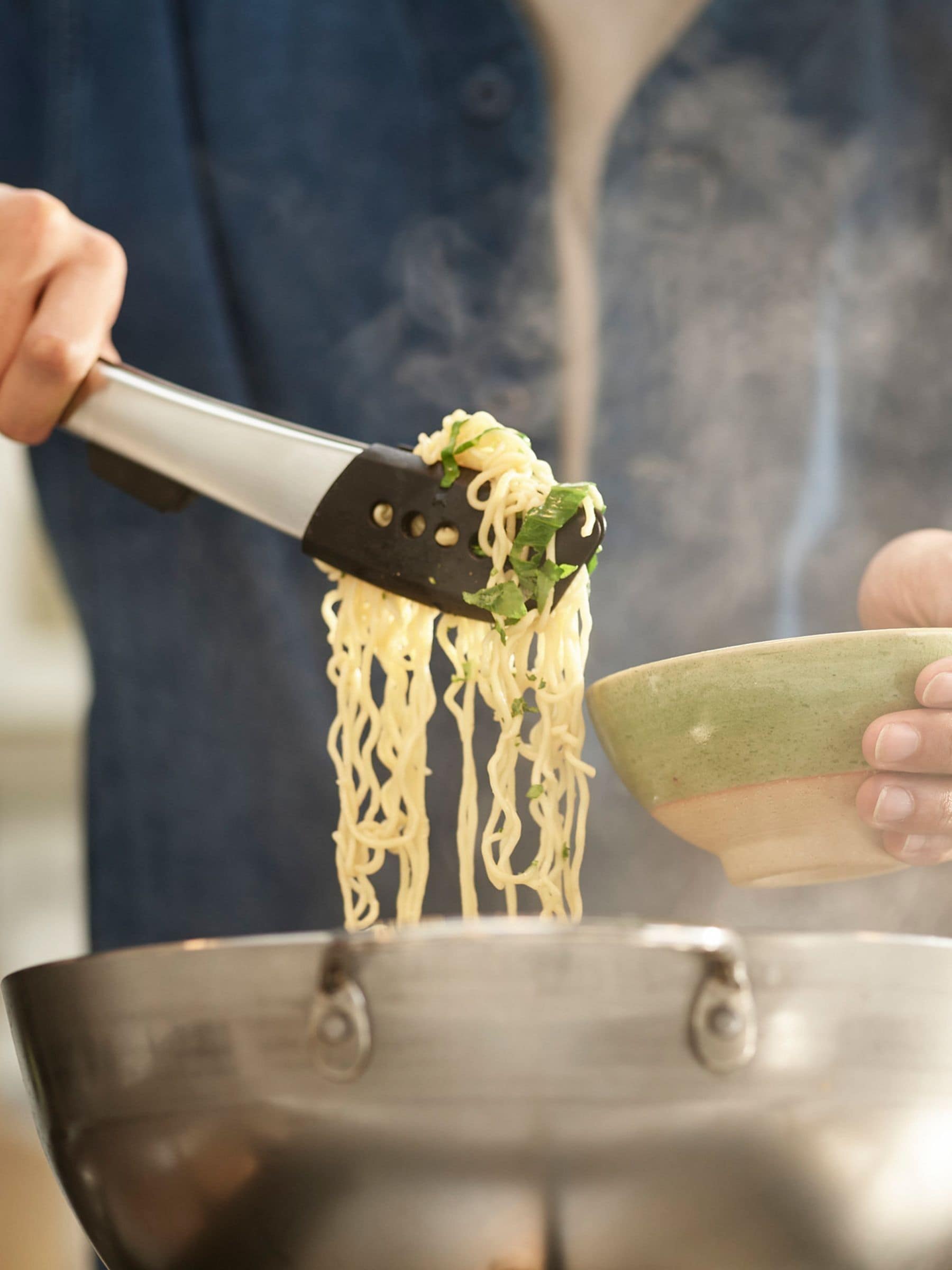 A great pair of tongs are an essential piece of kitchen equipment and this smart 2-piece set gives you twice the benefit. It includes two styles of tongs; first a pair with precision tips that are perfect for handling delicate foods and, second, a pair with larger tips that are ideal for gripping bulkier foods. Both have lockable, stainless-steel arms with integrated tool rests, designed to prevent the tips from touching the worktop when placed down. This not only improves hygiene, but also helps reduce mess during cooking. The silicone tips on both are heat-resistant up to 270°C/520°F and perfect for use with all types of cookware, including non-stick.