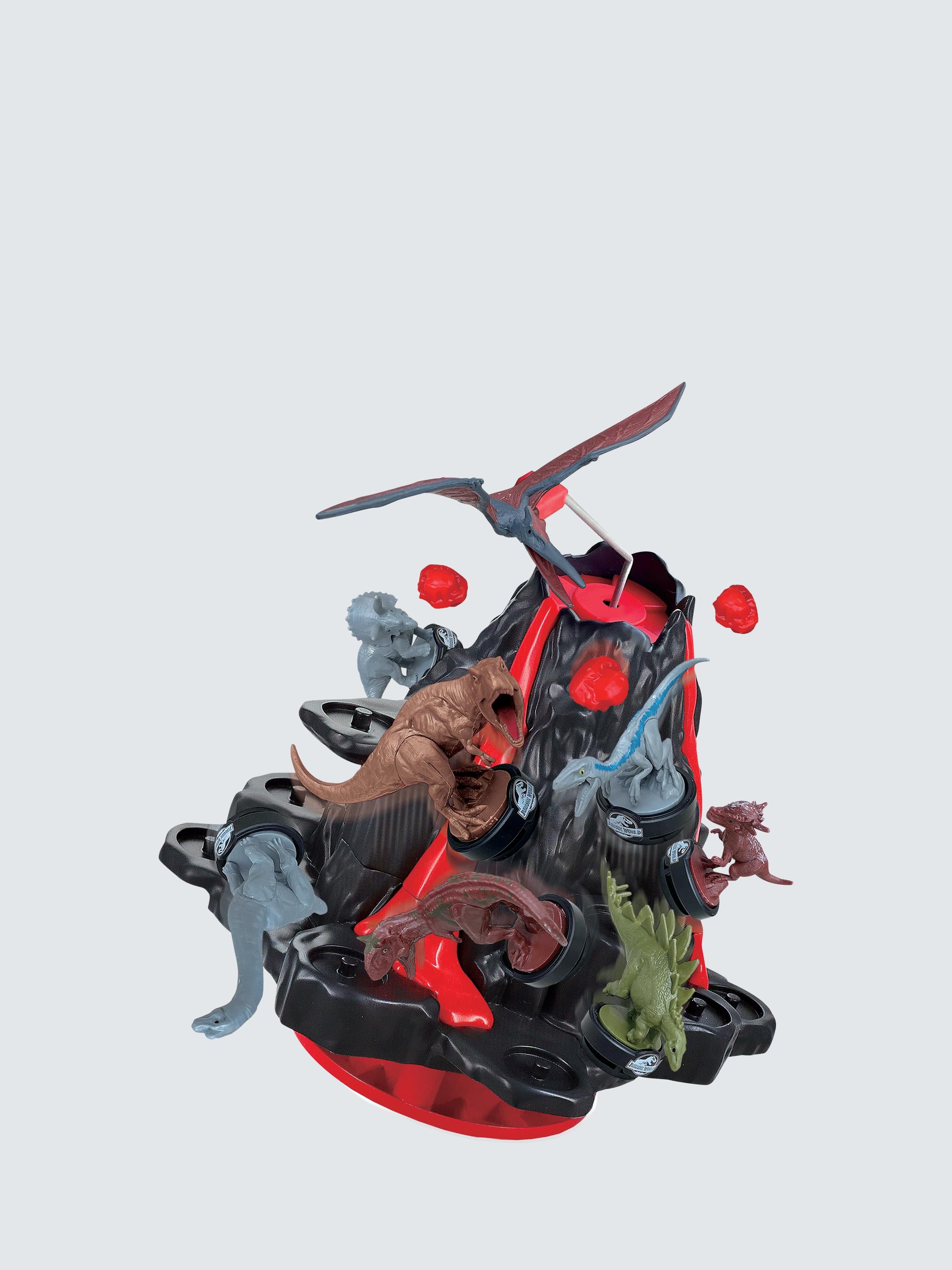 • Objective is to stack figures without causing the Pteranodon to activate the volcano.