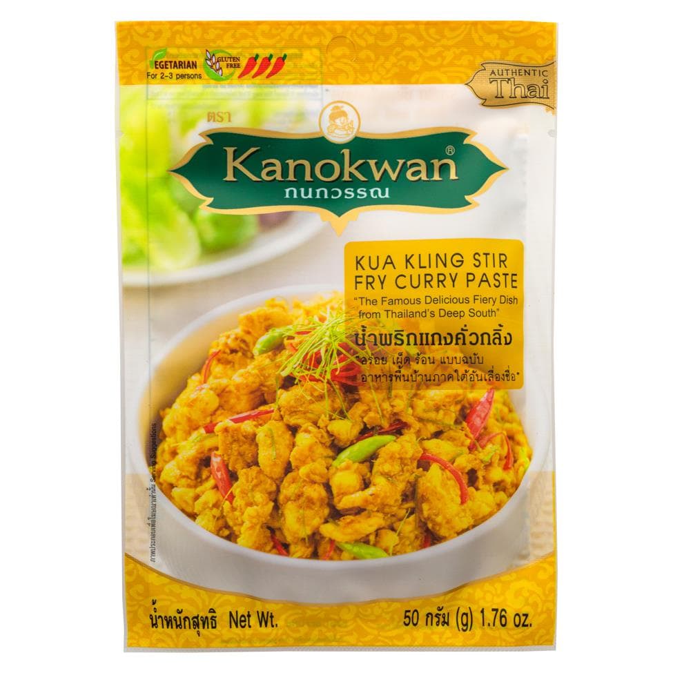Kanokwan Kua Kling Curry Paste is a robust and aromatic Thai curry paste known for its deep and spicy flavour profile. Made with a blend of ingredients such as dried chilli peppers, lemongrass, galangal, and a variety of spices, this paste creates the signature dry and intense taste of Kua Kling curry. It is perfect for making this traditional Southern Thai dish, which is typically served with meats like pork or chicken and pairs well with a range of vegetables. The paste is convenient and easy to use, allowing you to prepare an authentic and flavorful Kua Kling curry at home with minimal effort. Ideal for those who enjoy a hearty and spicy curry experience.