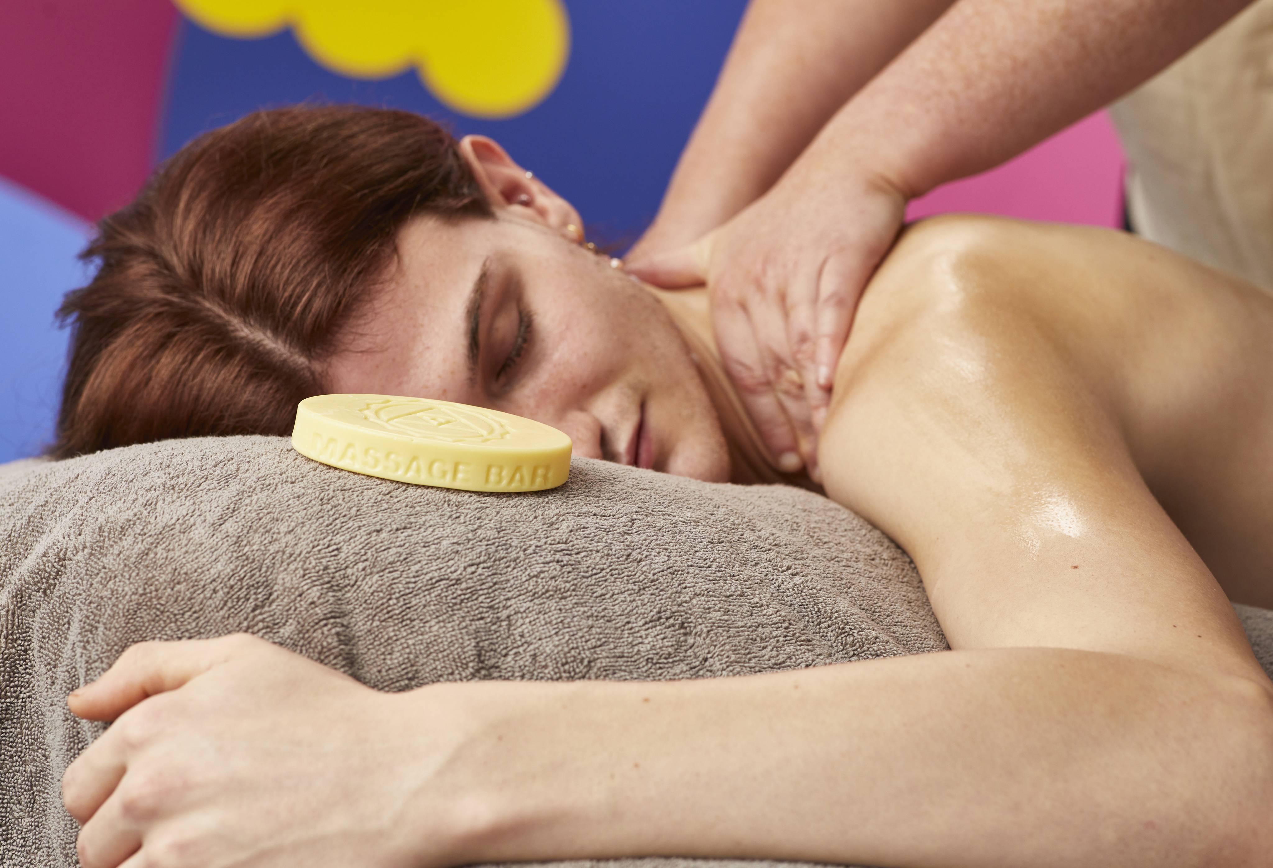Melt the bar directly onto dry skin and massage the oils and butters in. If the bar is cold, begin by warming between your hands to melt. Lush massage bars are generously oil-rich, so apply as much or as little as desired and re-apply as needed.