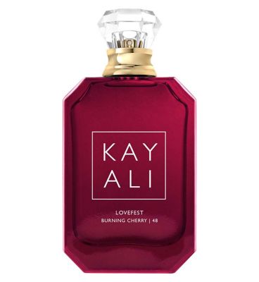 Lovefest Burning Cherry | 48 is full of hypnotic signature notes with burning cherry taking center stage. Succulent raspberry offers even more fruity juiciness to the top note while sparkling Italian bergamot brings an effervescent sensation. In the heart notes, experience the petal floralcy of rose damascena essence, spicy jasmine sambac, and powdery heliotrope. Sweet praline along with these exotic florals creates an irresistible delight. Smoky palo santo and deep, rich guaiac wood offer a textured, warm tone to the ambery Peru balsam. With its earthly and mossy qualities, patchouli prisma harmoniously balances this captivating scent for undeniable seduction.