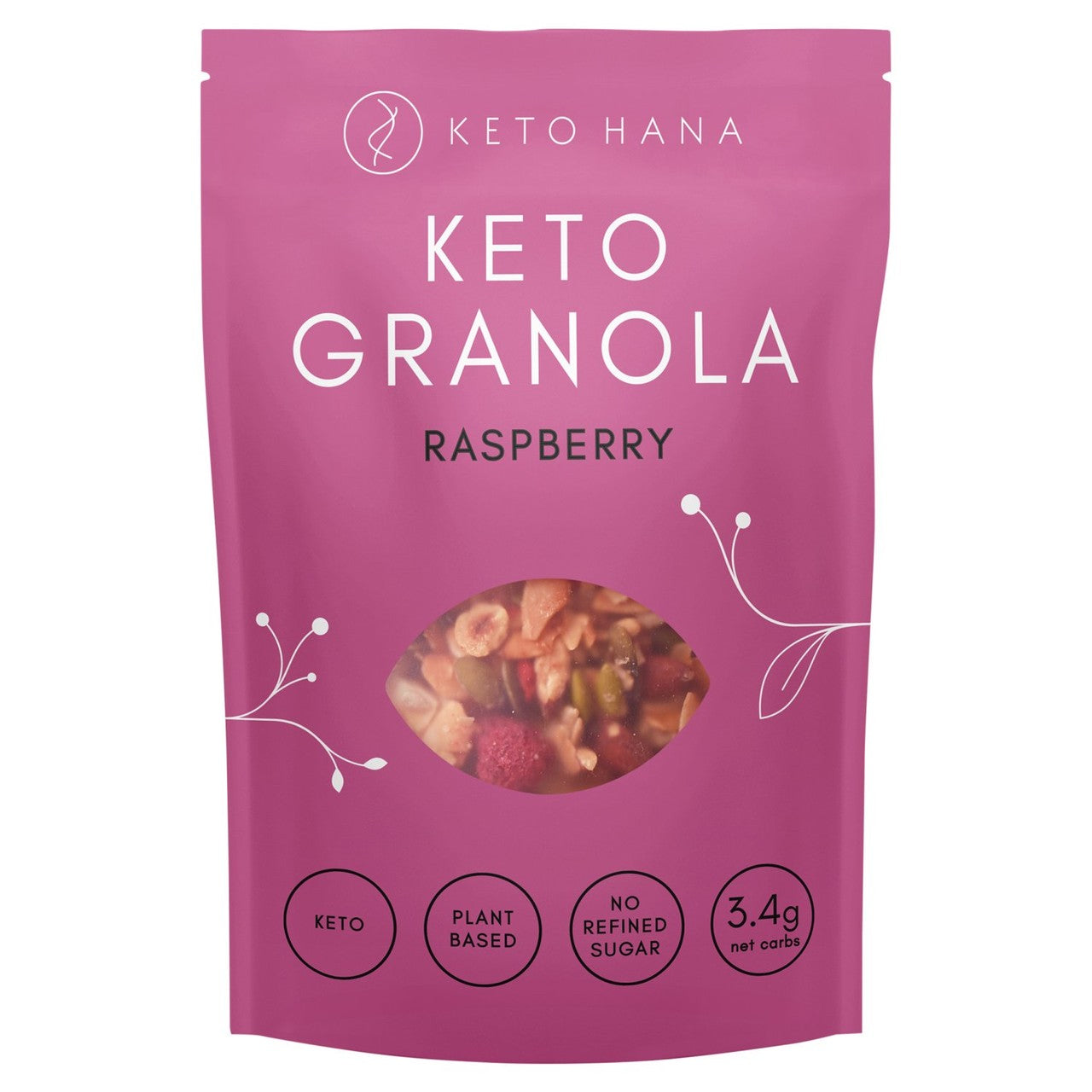 Keto Hana Raspberry Granola offers a delicious, low-carb option for those following a ketogenic lifestyle. This product is carefully crafted using high-quality nuts, seeds, and natural coconut oil. It combines these elements with real raspberries to deliver satisfying flavour without relying on traditional sweeteners.