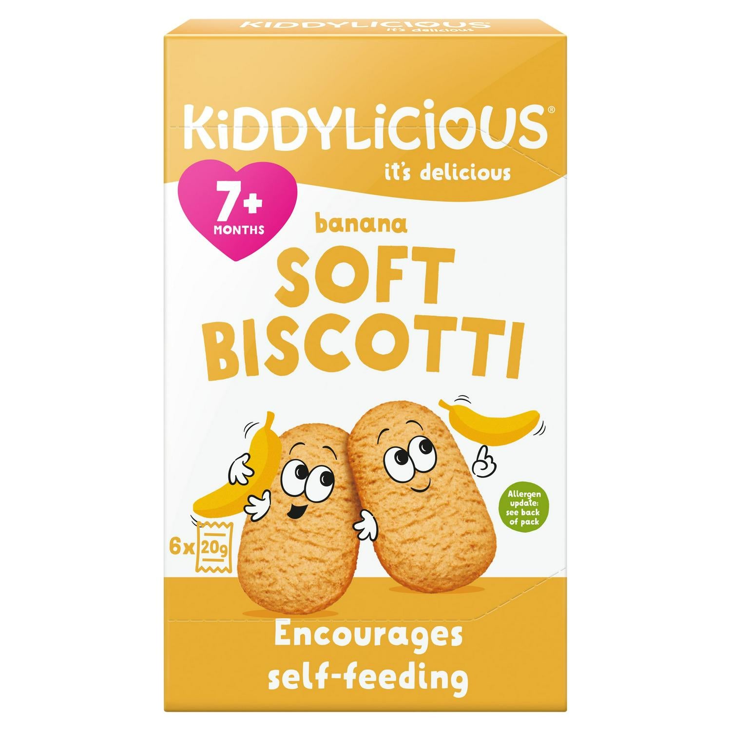 Kiddylicious Banana Soft Biscotti offers a delicious and soft texture ideal for little ones starting to self-feed. These tasty biscuits contain a natural fruity flavour derived from bananas, making snack time engaging. They are formulated with gentle textures suitable for developing hands and mouths, and can be easily mashed into milk.
