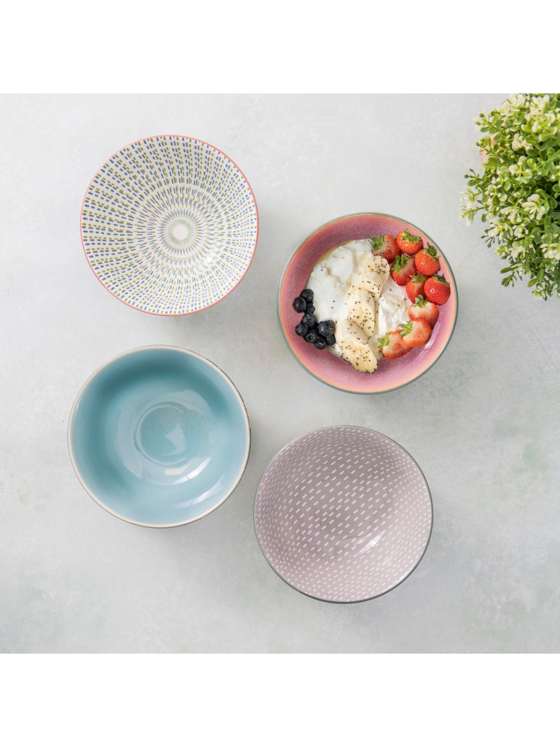 Great-value set includes 4 x robust ceramic cereal bowls. Jazz up your crockery cupboard with the 4 funky floral designs. Rely on them for serving cereal, soups, ramen, snacks or healthy Buddha bowls. Made of robust, dishwasher-safe stoneware, they're ideal for everyday use. These breakfast bowls come ready to wrap... Read More