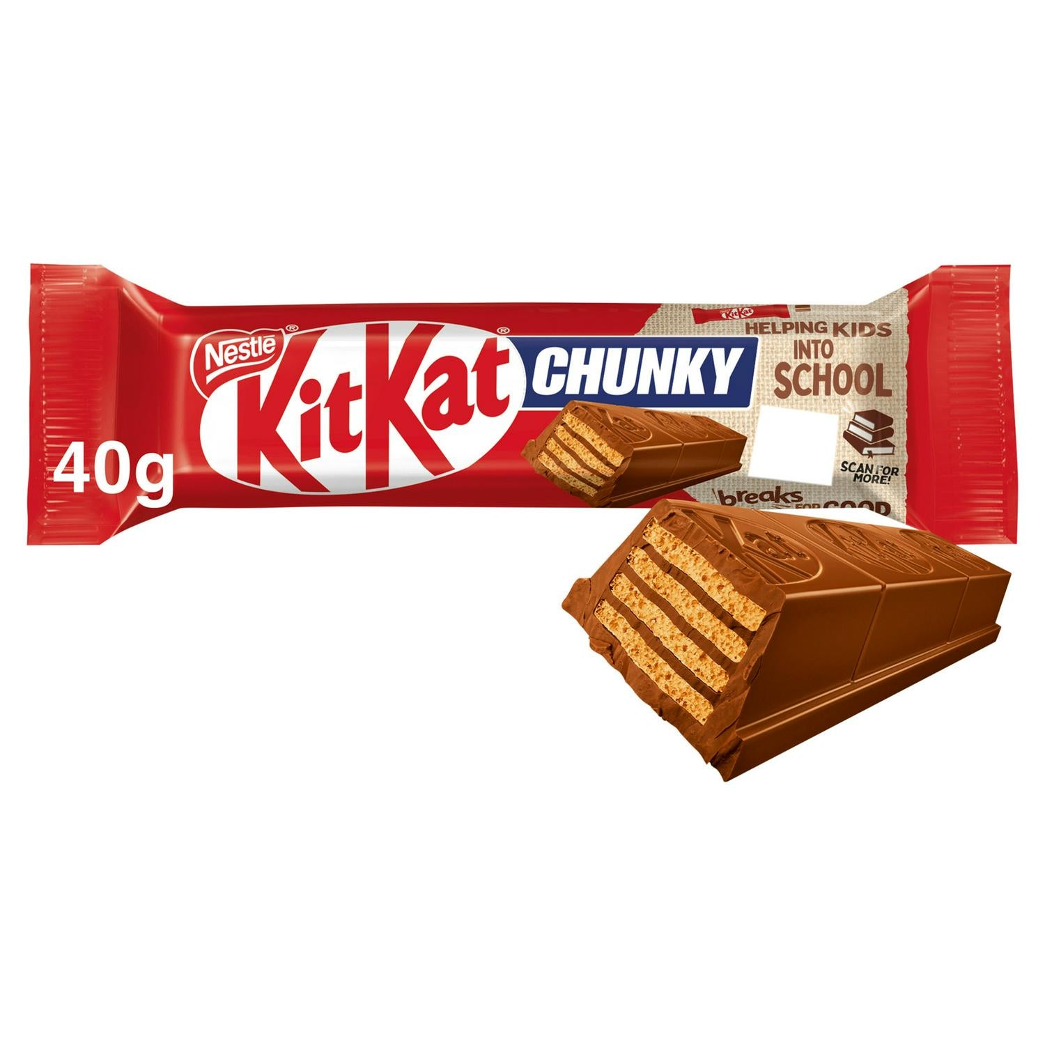Enjoy the satisfying texture of the KitKat Chunky Milk Chocolate Bar, featuring a classic crispy wafer base covered in thick, smooth milk chocolate.