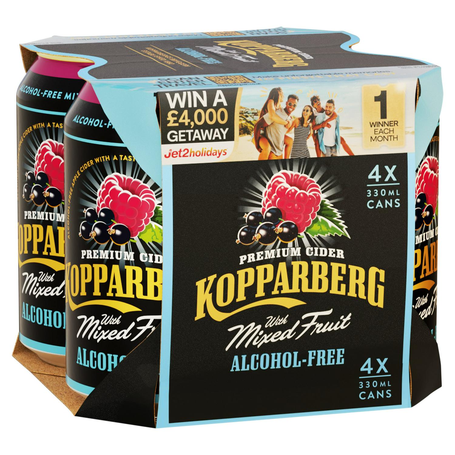 Enjoy the distinct taste of Kopparberg Premium Cider, now completely alcohol-free. This refreshing beverage offers the signature Mixed Fruit flavour, perfect for any occasion requiring a non-alcoholic option.
