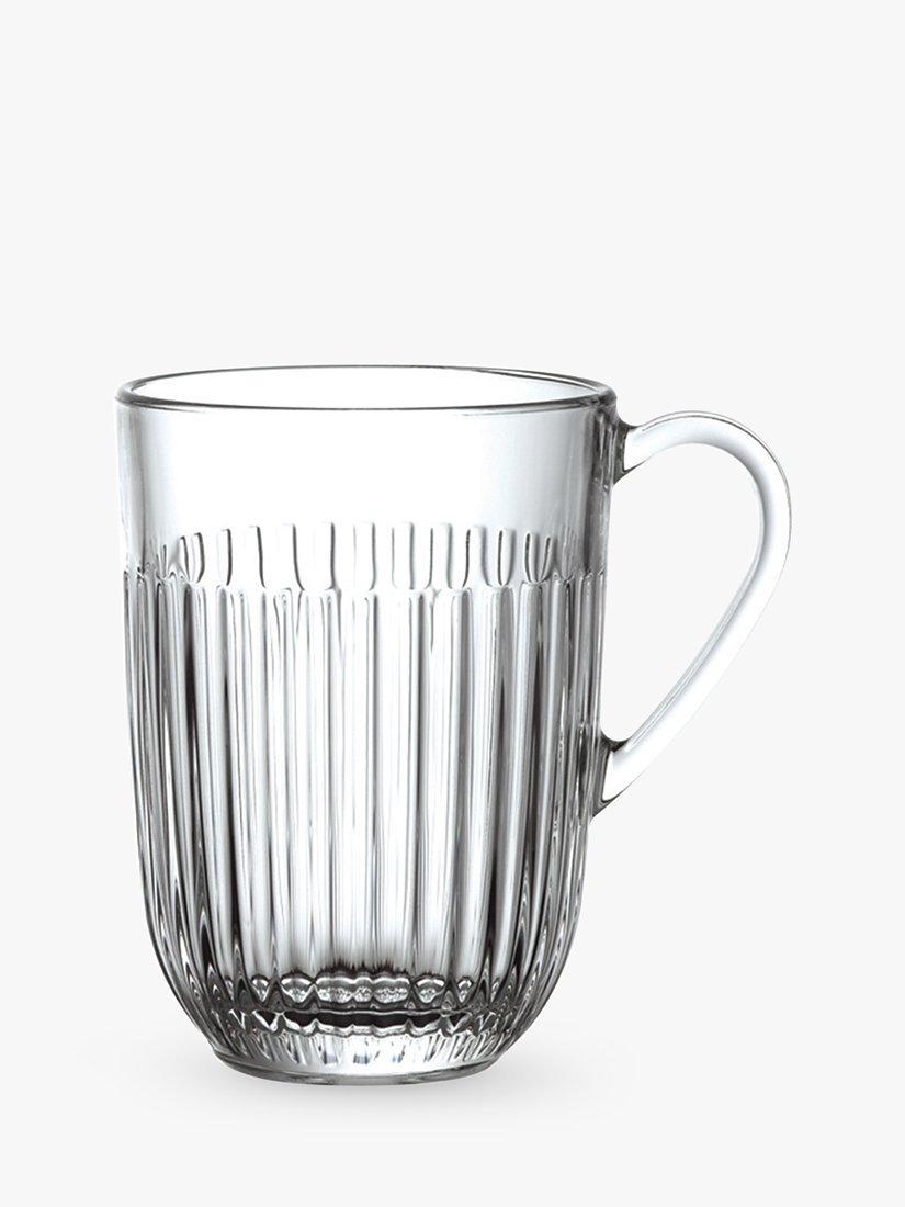 Chic and tactile, this set of six Ouessant mugs from La Rochère feature embossed vertical lines. A generous size, they're comfortable to handle and ideal for hot coffee and tea. The resilient glass is dishwasher safe for easy cleaning, microwave safe and can withstand thermal shocks of up to 120°C.