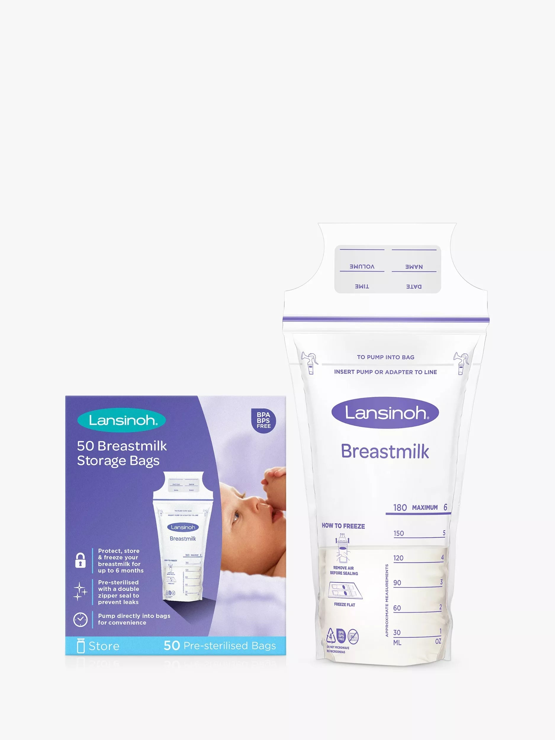 Lansinoh's award-winning Breastmilk Storage Bags are perfect for parents looking to store a bank of breastmilk in the fridge or freezer, without taking up too much space. Leakproof, even when laid flat, these handy bags can store frozen breastmilk for up to 6 months and can be pumped directly into any Lansinoh Breast Pump, saving time and preventing any messy milk transfers or spills.