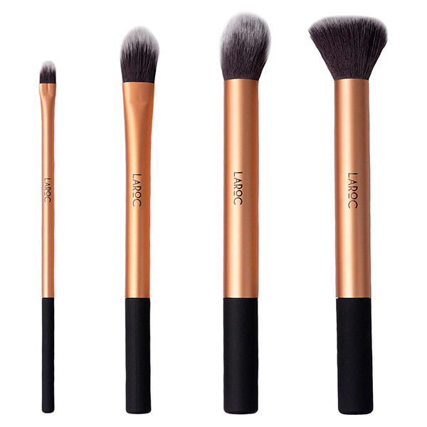 set includes 1x contour brush 1x pointed foundation brush 1x detailer brush and 1x buffing brush made from ultra fine soft 100 synthetic bristles for a professional application
