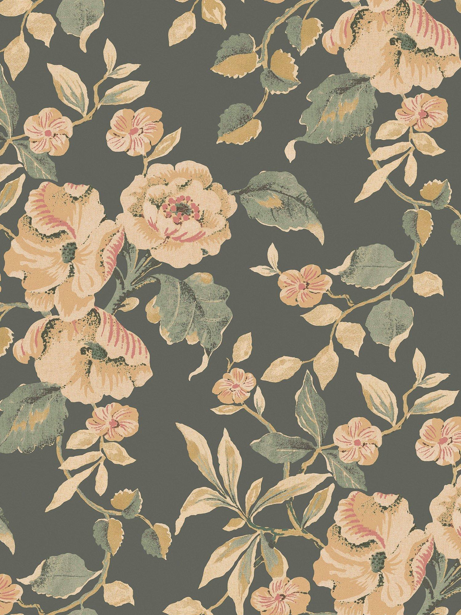 Laura Ashley offers the Alyworth Trail Wallpaper, a beautiful choice for elegant interiors. This design presents dense, painterly imagery depicting trailing hibiscus flowers amongst scrolling leaves. This striking wall covering captures the essence of a warm summer day, providing visual depth. It is superb.