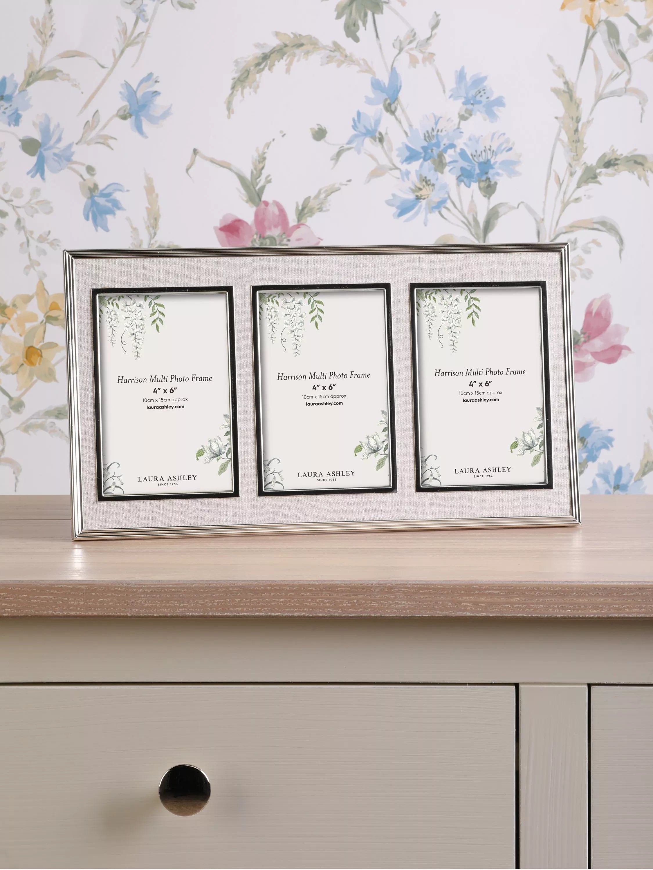 With a silver-plated metal frame faced in pale linen fabric and with raised beading, the elegant Harrison photograph frame from Laura Ashley is perfect for displaying your most treasured images.