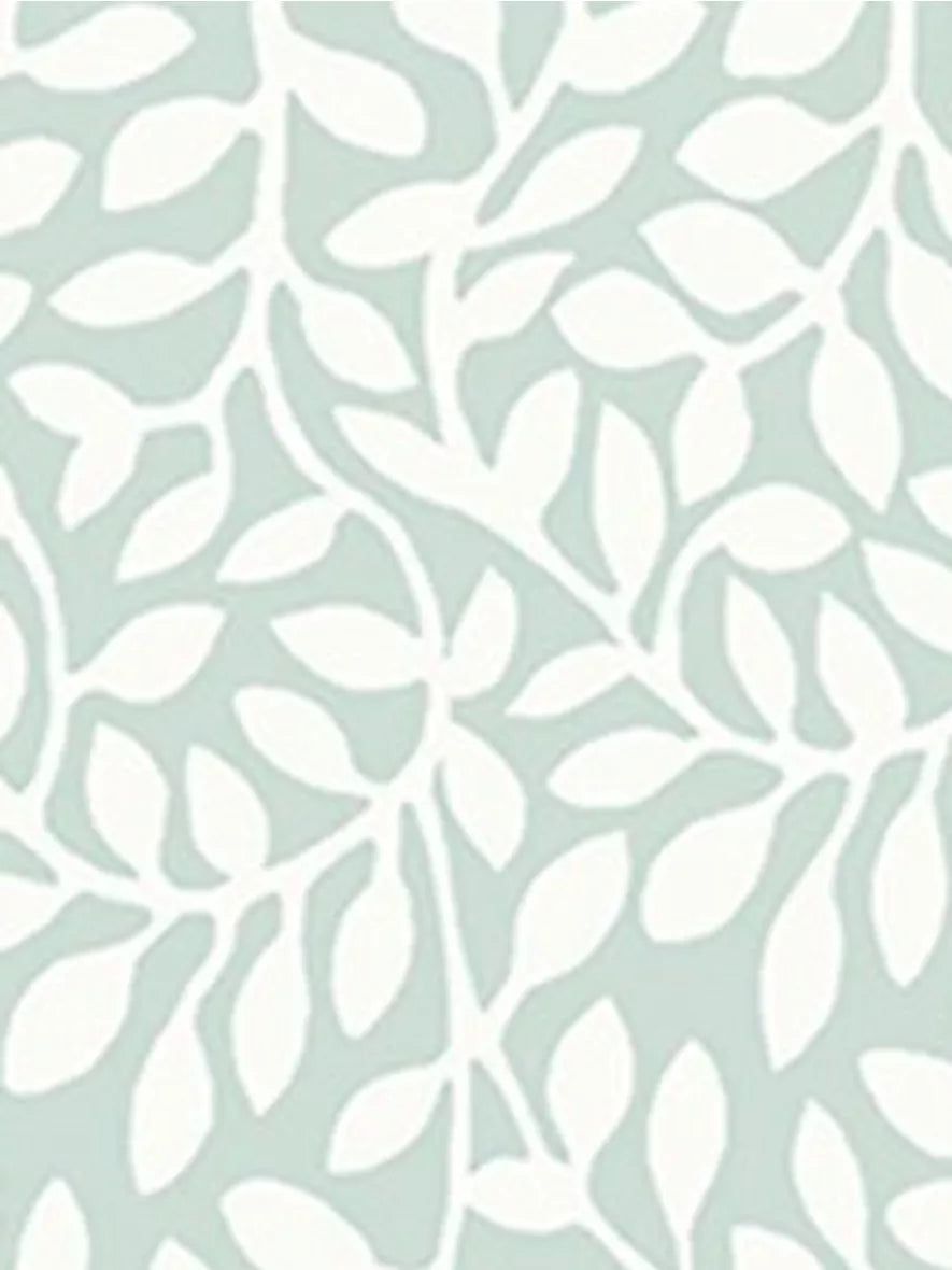 A pretty, small-scale print design with delicate white leaves tumbling together on a soft duck egg background. Little Vinesis a timeless delight for any room.