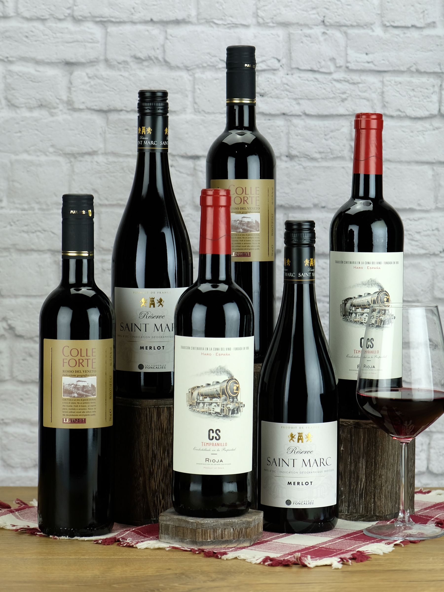 Three Old World wines from France, Italy and Spain. Keep your wine rack stocked up with this selection of great value red wines that are great on their own or with food.Case contains: 2 x Bodegas Carlos Serres Rioja Tempranillo, Spain 2 x Saint Marc Reserve Merlot, Fance 2 x Colle Forte Rosso del Veneto, Italy. Volume 3x 750ml, ABV 12.5% - 13%.